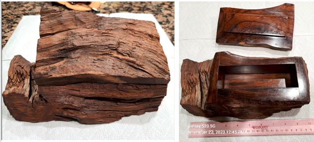 Desert Ironwood Box. Rock solid and heavy. Ten inches long 4" deep, 4" tall. Very unique piece. $50 plus actual shipping within the US continental states only, or swap for pen kits or blanks if you have any unique/unusual blanks.