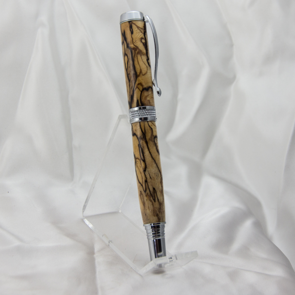 This pen was turned with a stabilized spalted maple blank from my firewood pile. The blank had been in hiding for at least 2 years. I need to get better organized.