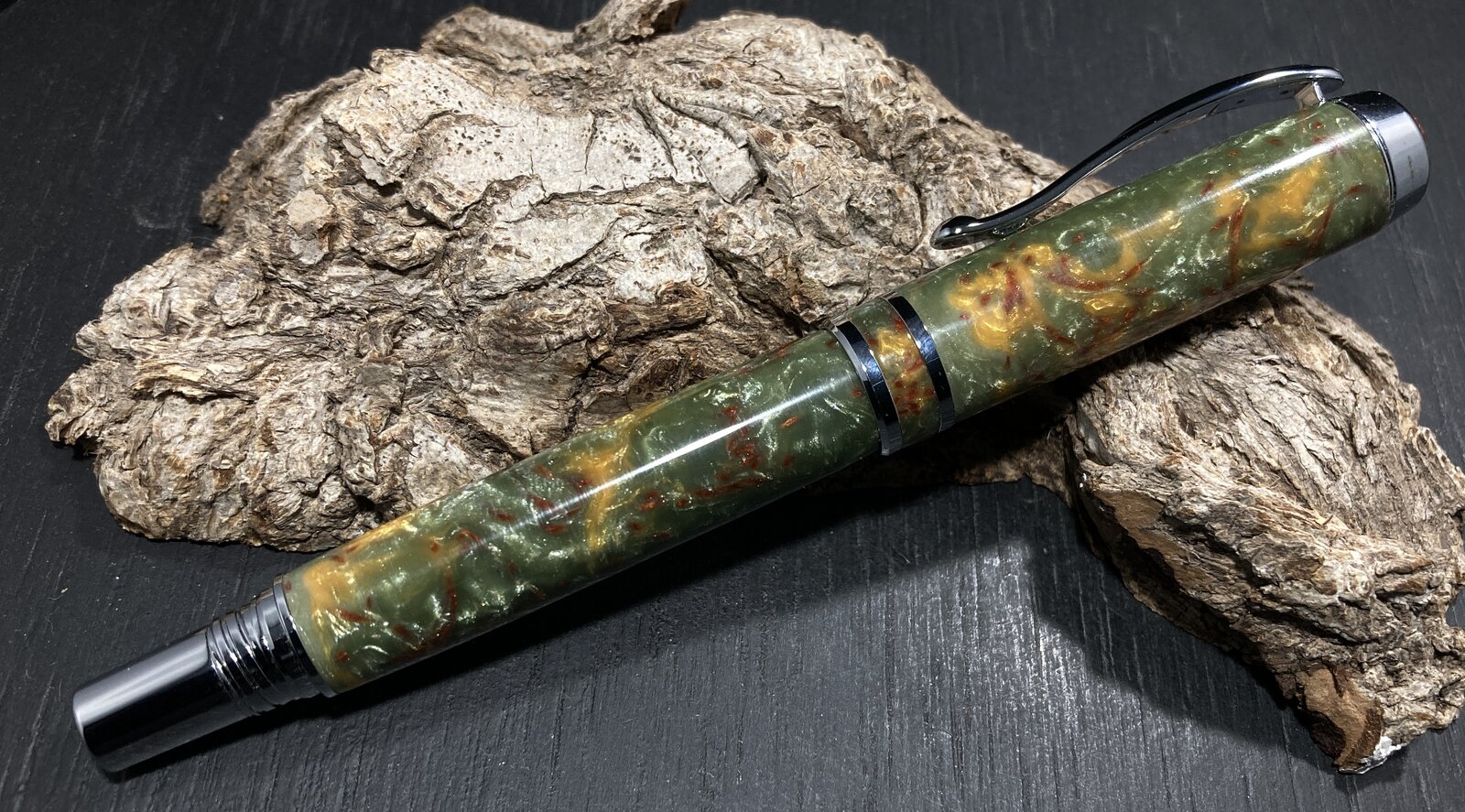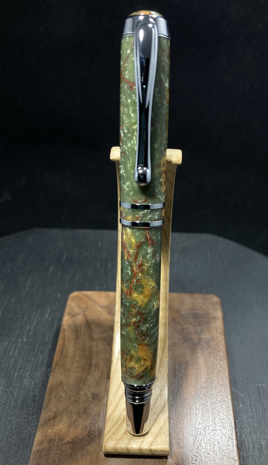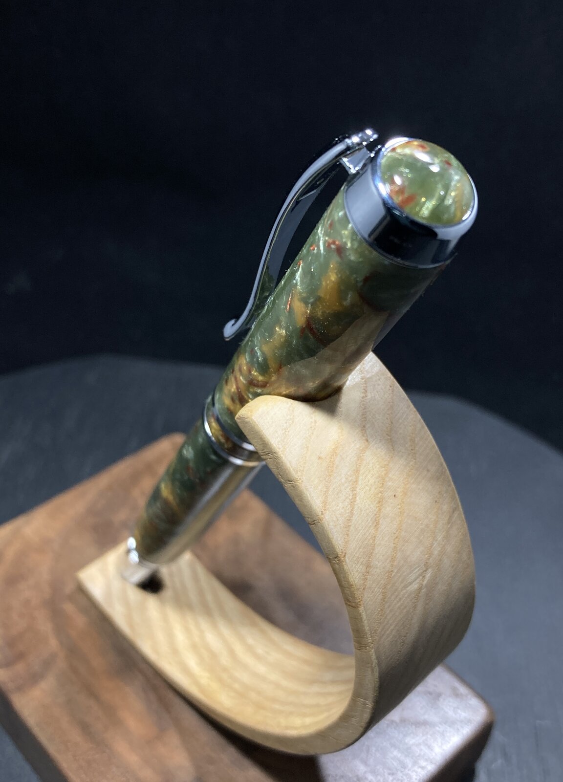 I turned the blank down to the final diameter (with a lot of checking with calipers). I then used micromesh to polish it on the mandrel, and then installed it on the pen.