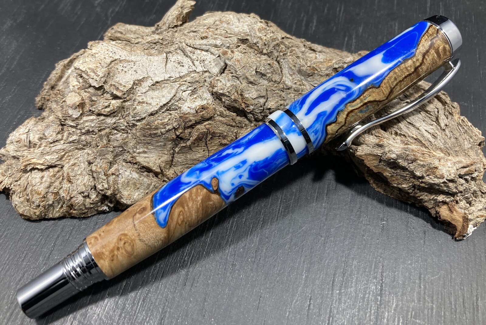 I think I spent more time making the Center band (using my shop-made cheapo resin mandrel) and the finial than I did on the entire rest of the pen. But, each time I get a little better, and it goes a little smoother.