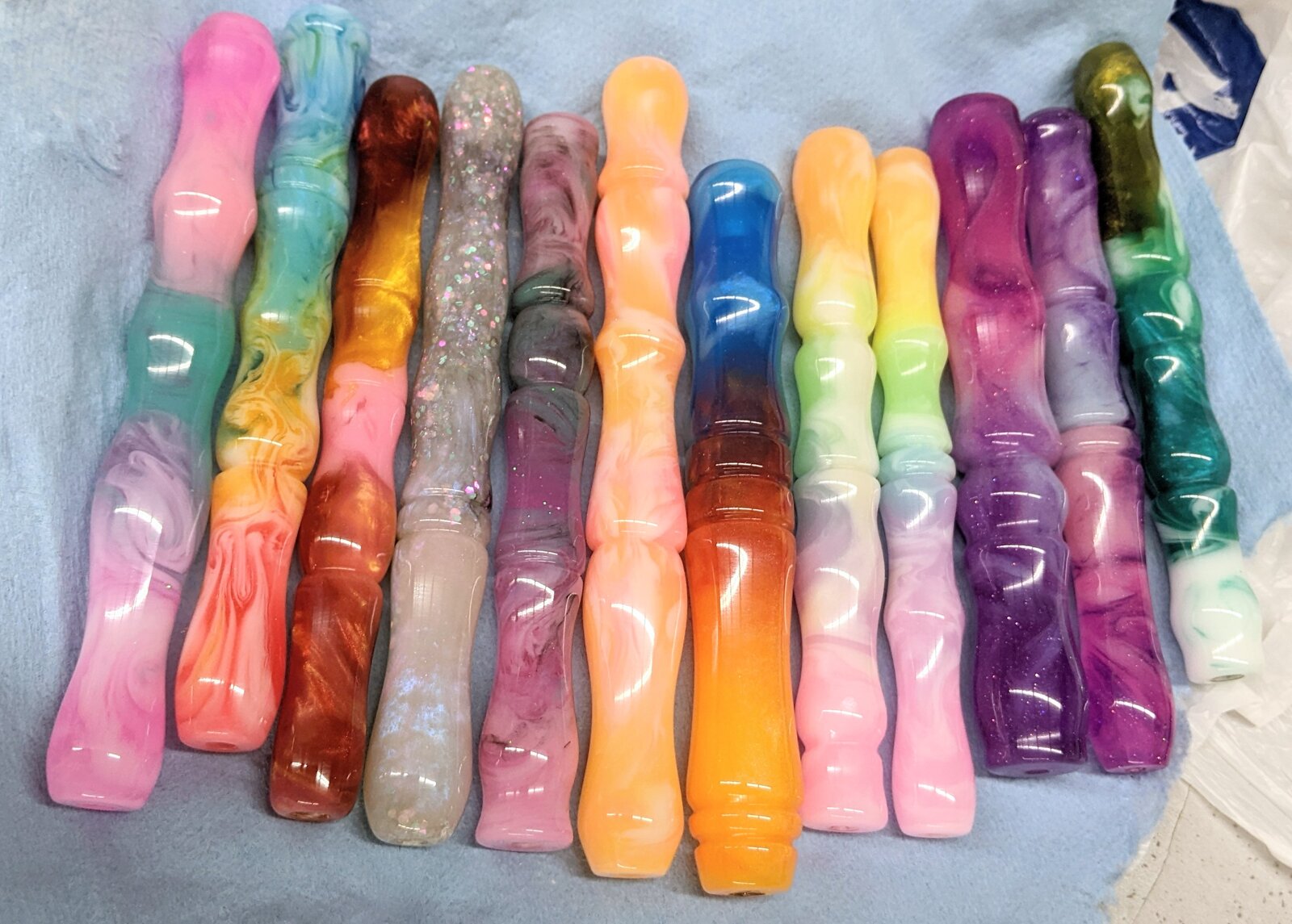 So it's been over a year now I started to make diamond painting pens, I started the hobby about 3-4 years ago but I was seeing all the beautiful resin pens and since I was already working with resin to make accessories, I just went all in and bought a wood lathe and just experiment and got help here and there from other turners!