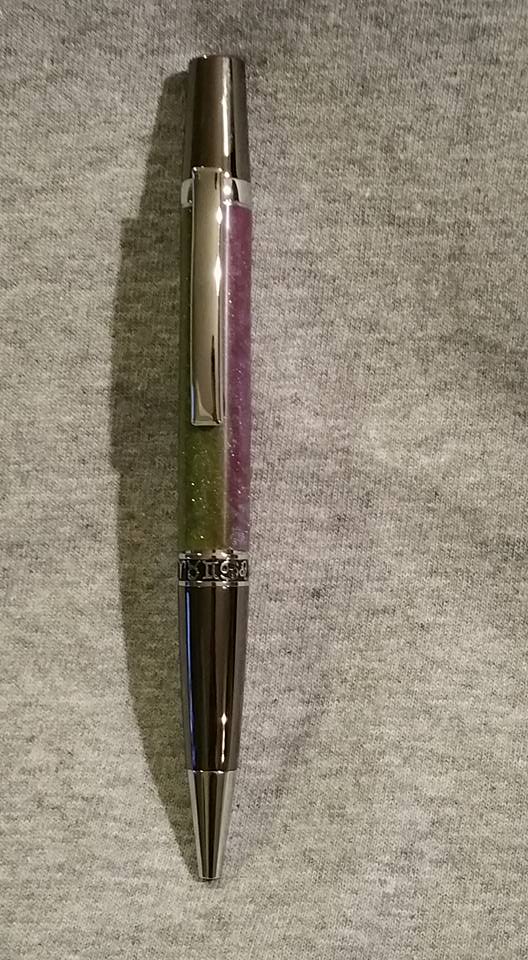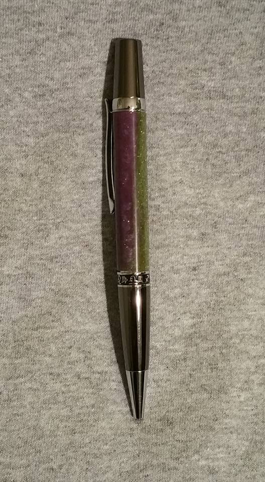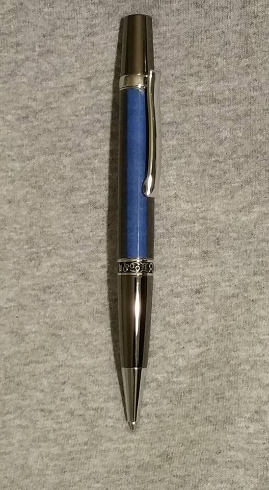 A friend of mine sent me four blanks with a police theme. Below are two of the four that I turned last night. The green/pink sparkle dust is one that I cast on my own and turned. It didn't look like much when I came out of the mold but after turning, sanding and polishing, this thing almost blinds you with all the sparkle! It is beautiful! As a matter of fact, someone on a FB group showed his daughter and she loved it so I am sending to her as a 'pay it forward' for all the nice things some of IAP members have done for me in the past