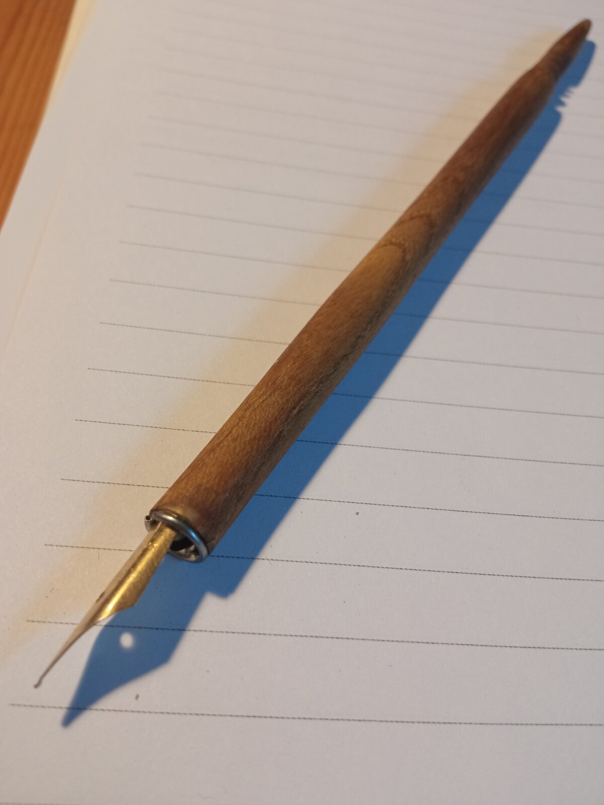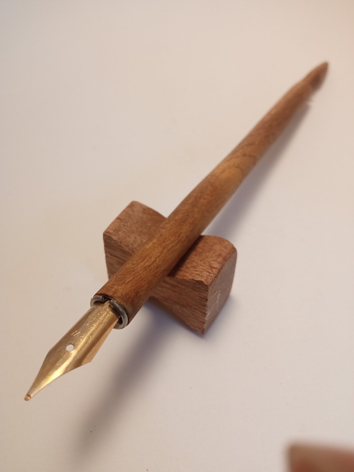 Ok this certainly doesn't qualify for showing off but its an interesting first attempt. I tried to make a dip pen holder for a couple of pen nibs i found at a local hardware shop. After paying a ridiculous amount of money for shipping costs i bought a packet of metal holders that work with 7mm tubes. I used a piece of black mullbery which i had laying around. I discovered later that it wasn't the ideal wood to carve details since it is rather brittle. Anyway this is the mulberry dip pen prototype, cheers