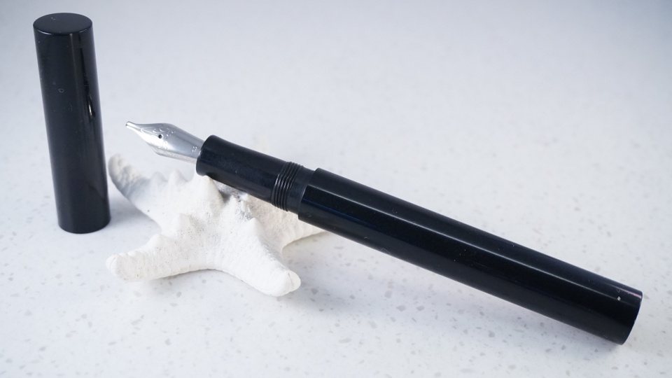 It's been a long road getting here, but, finally, I have two kitless pens to show this morning... The first is this ebonite fountain pen with a Jowo 1.5 Italic Nib and a Schmidt Converter. This is the first full custom pen I've made and I wanted to cleanse my pallet, so to speak, with something very functional, so I created something straight lined and square shouldered with a nearly hidden join line between the cap and the body of the pen.