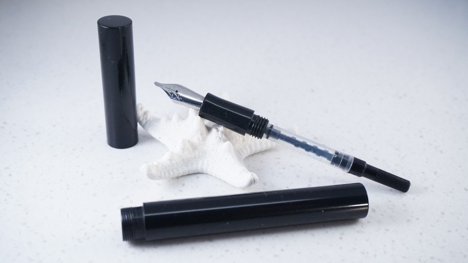 The form factor is slightly different than the black pen, the cap and body aren't flush, which makes it a little easier to find the cap vs. the body of the pen when opening.