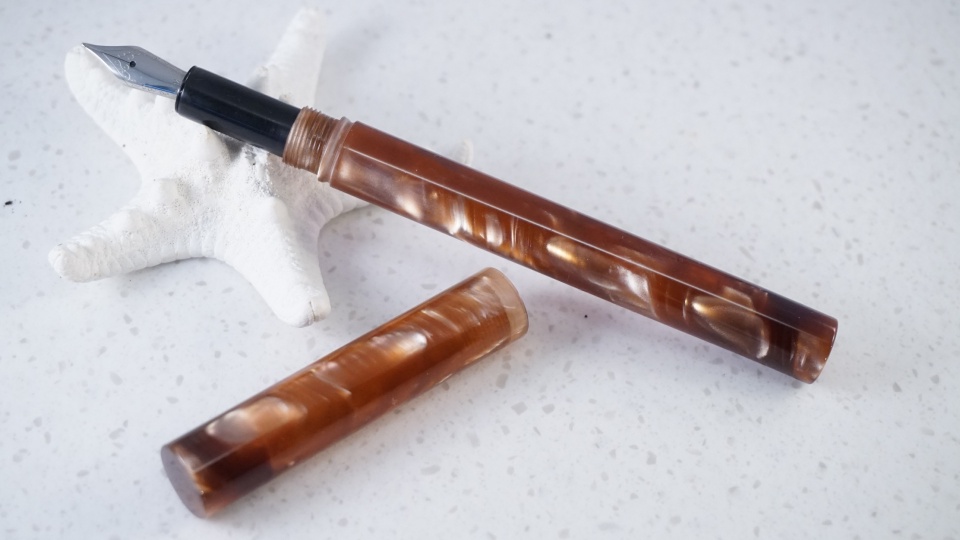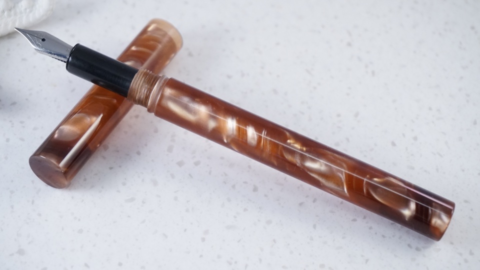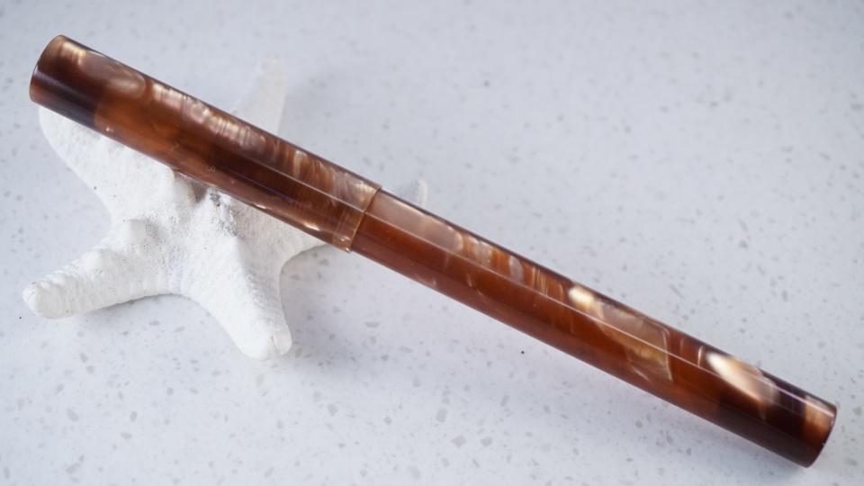 The pearl in this Lucite material is very pronounced and is evident on only one side, which explains why the photos look like there are two different pens photographed. The Lucite is very transparent and when I use it again I might attempt to polish the interior to let you to see through it easier.