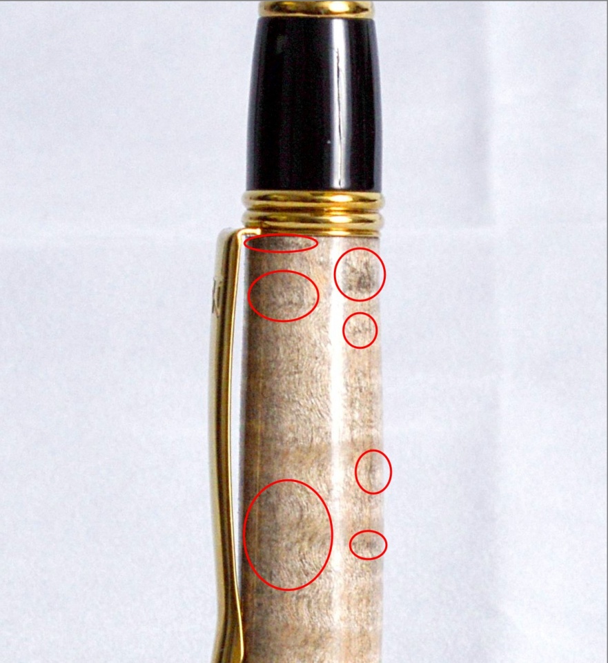 Hello all, I'm having an intermittent problem with sanding/finishing turned pen blanks. Every so often, I get what seem to be "dirty checks" in a turned piece. I usually turn with sharp tools and sand with 150,240,320, 400. I then use micro-mesh up to 12000. I'm doing both rotational and grain sanding. I also wipe the piece between grits.