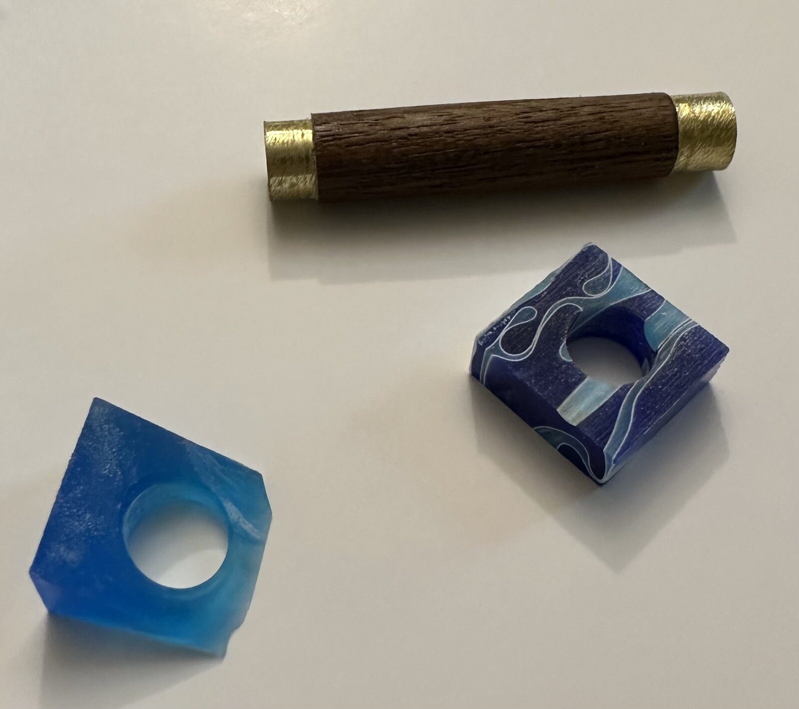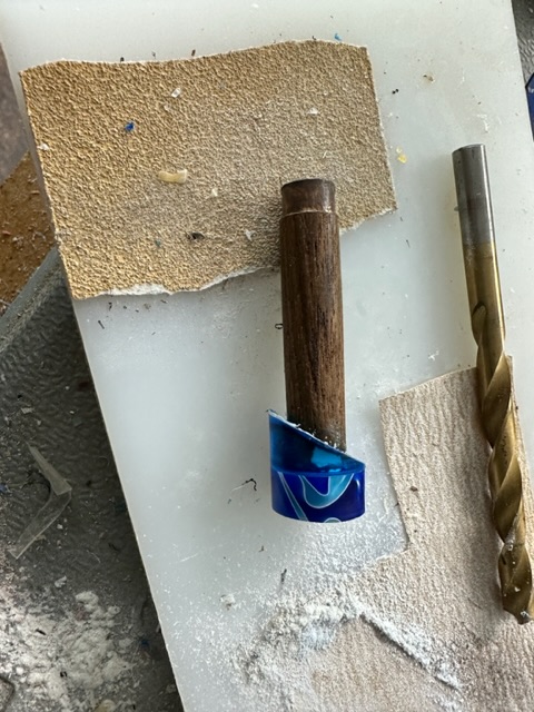 Before epoxying (added blue dye to epoxy) the acrylic I painted the ends of the tube brown.