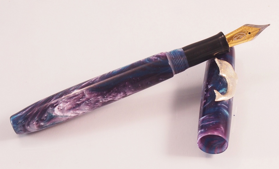 I made a metal clay dolphin roll stopper for my recent completed kitless fountain pen.
