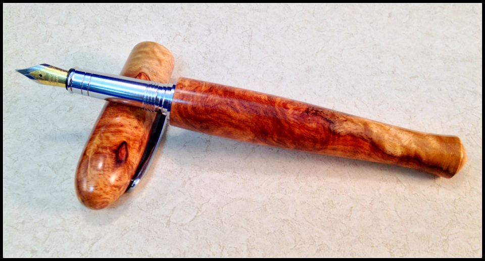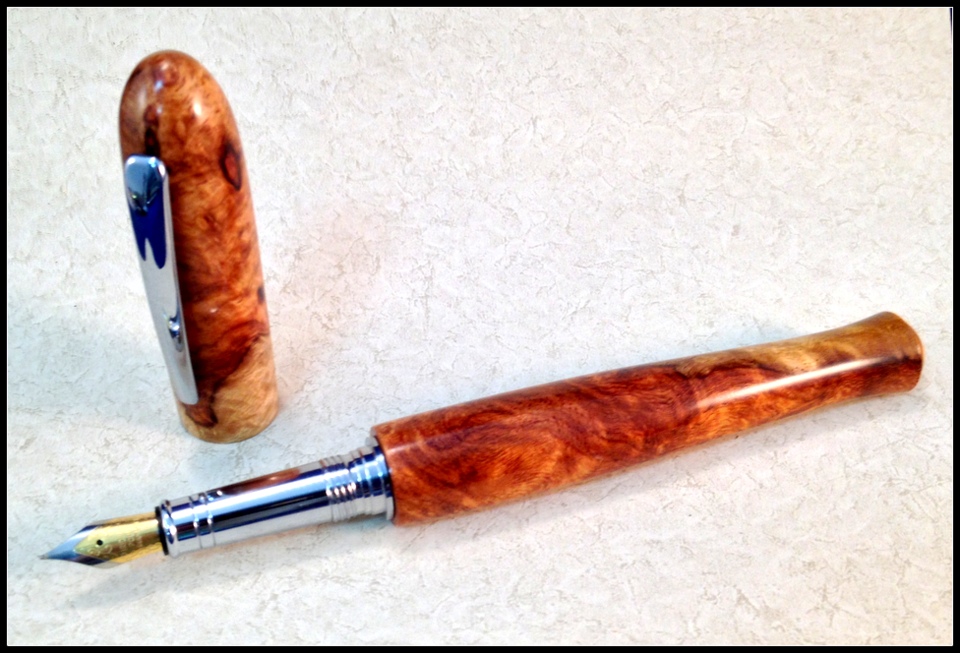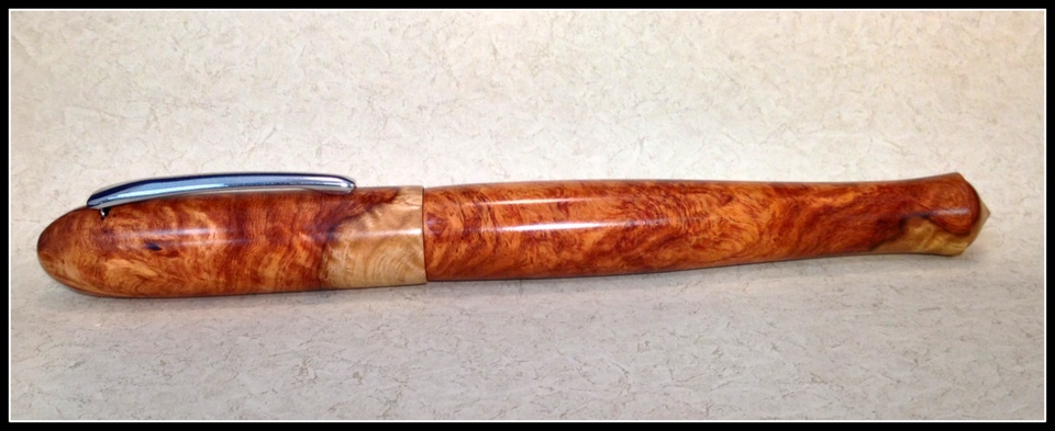 Finished this pen this weekend. Aboyna burl double closed end FP with hidden clip. CA finish. C & C welcome. Evan