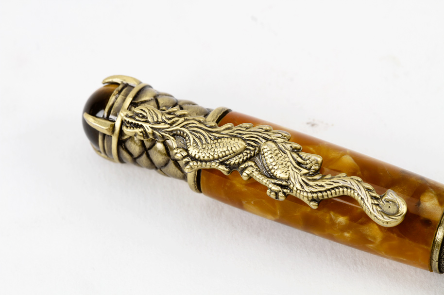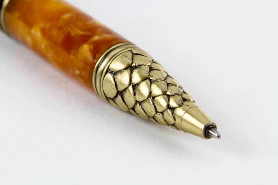 Also, I think that the dragon clip looks a bit out of scale compared to the details of the pen. And the casting is a bit "muddy" in the detail as well (may also be because of prototype?). I'd rather see something a bit bolder/bigger in scale there (dragon head only or arm/claw) or better detail in the clip. As is, it looks a bit cheap compared to the rest of the kit and detracts from the pen overall. The dragon looks more chinese than medieval...which is more what "I think" you are going for (but I could be wrong)...