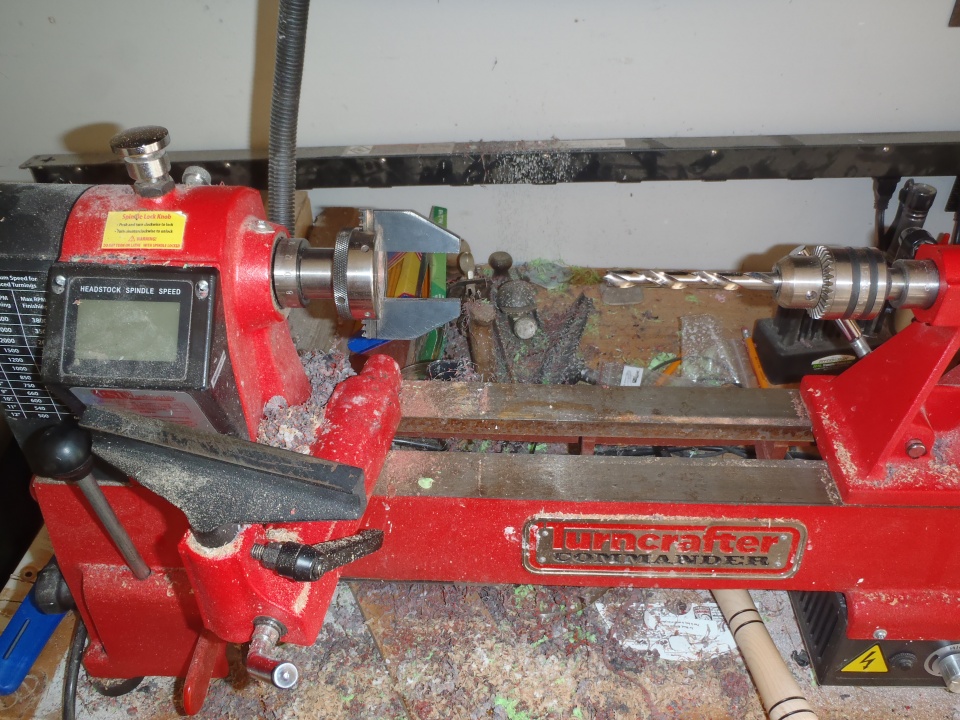 I've been using the lathe to drill my blanks with great results until recently. I've been drilling some plastic blanks and when get finished I have a perfect hole on one side and a hole about 1mm off on the other. Here are some pics of my setup with a 10.5mm bit. I end up with a void where you can see the epoxy. Is there a way to adjust the tail stock or align it?