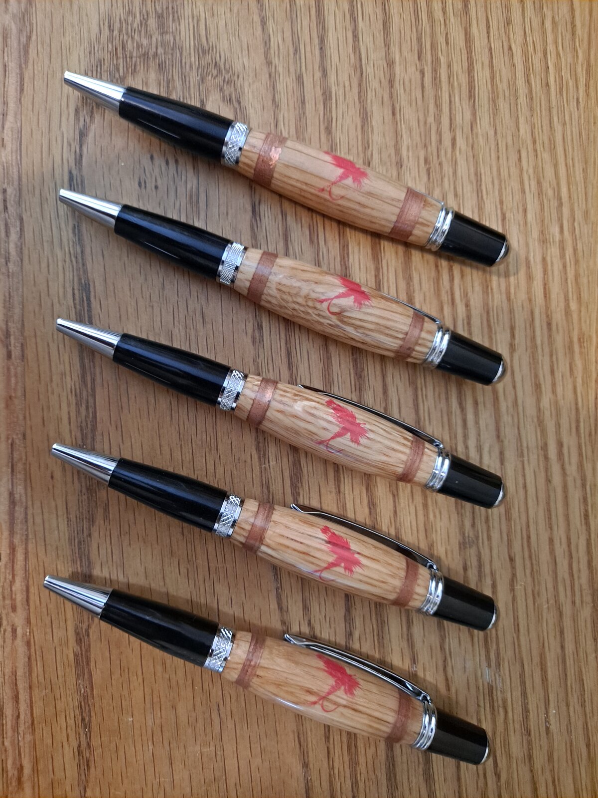 These are the pens I made for the Dryfly guys that gave me all the used staves from one of their barrels. Fun fact for those who have yet to try barrel wood pens, the wood smells just like whiskey as you work it. A fairly enjoyable experience.