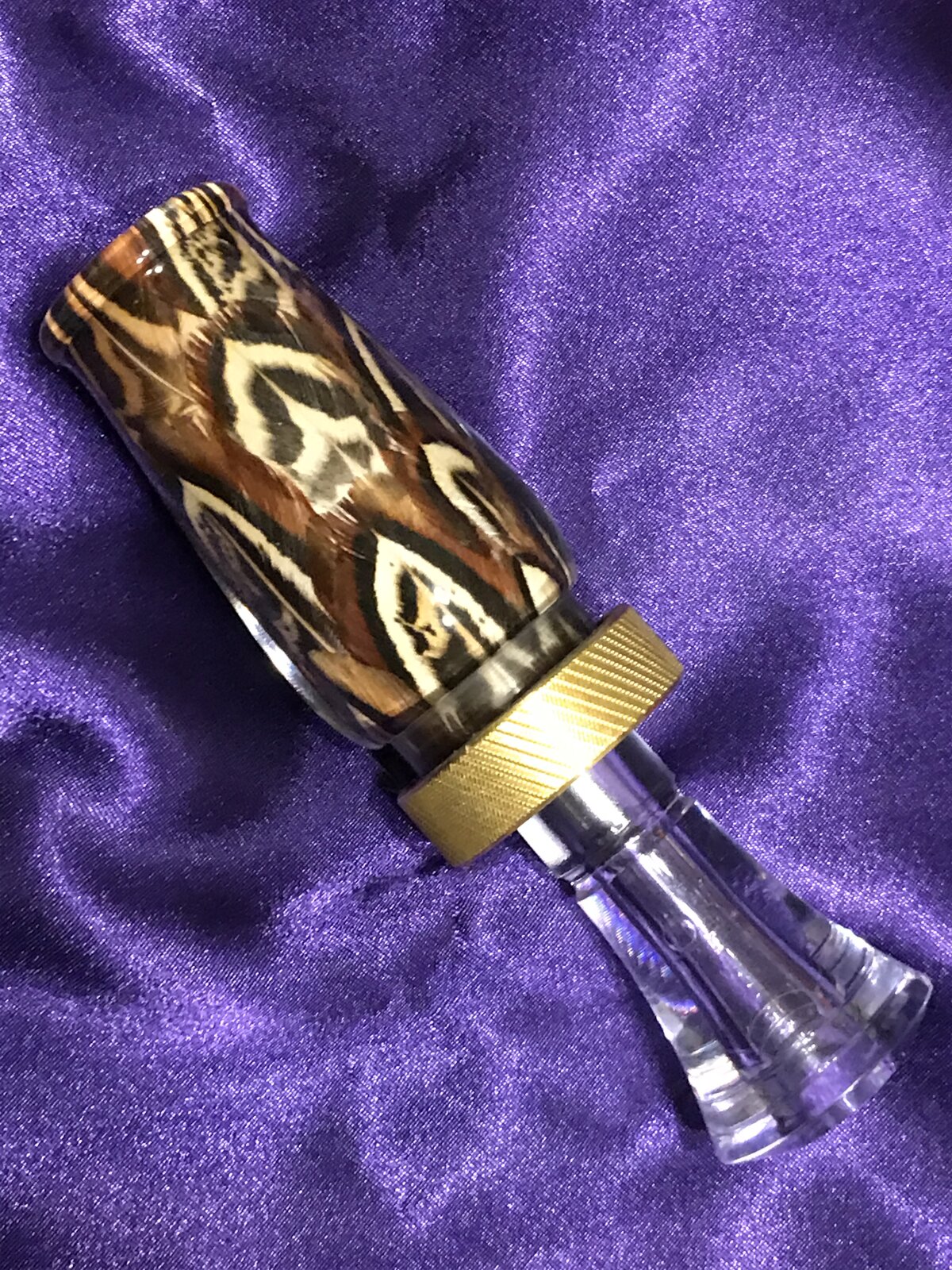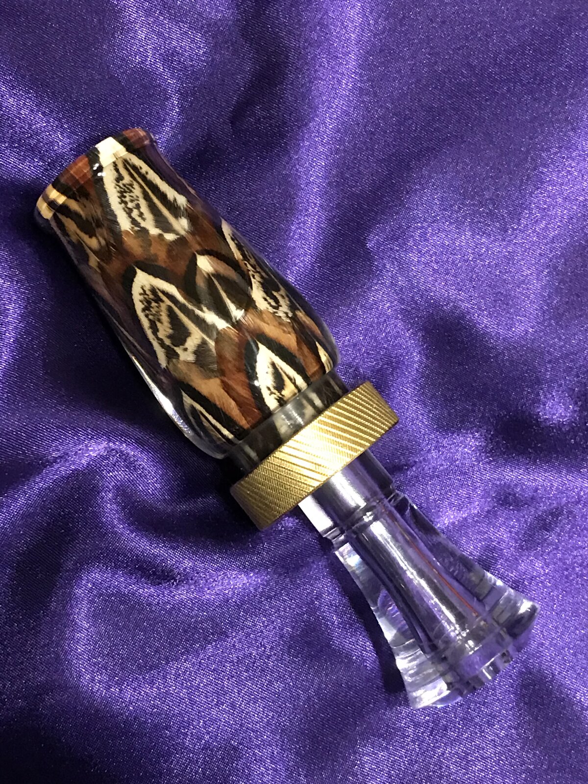 A duck call with real pheasant feathers. Although I'm closer to where I'd like to be, I'm not quite there. I'm happy overall just not there laying out the feathers. I'm pleased with the cast and that's been a big obstacle I still want to improve the final product. Questions and Comments Welcome.