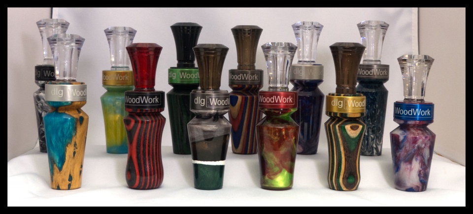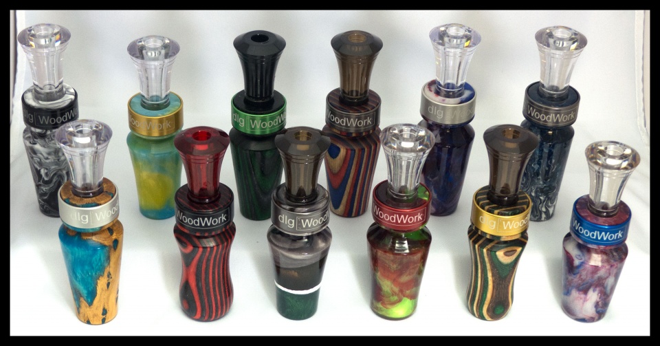 Great looking group of calls. I turn more game calls than I do pens. I use PR and I pour all my barrels with echo inserts. I have just this year added PR turkey pot calls to my inventory. They sound really great and they are really loud. In wood calls I normally have 8 sound holes in the bottom. On the acrylic I've had to drop to 6 holes because they are so loud.