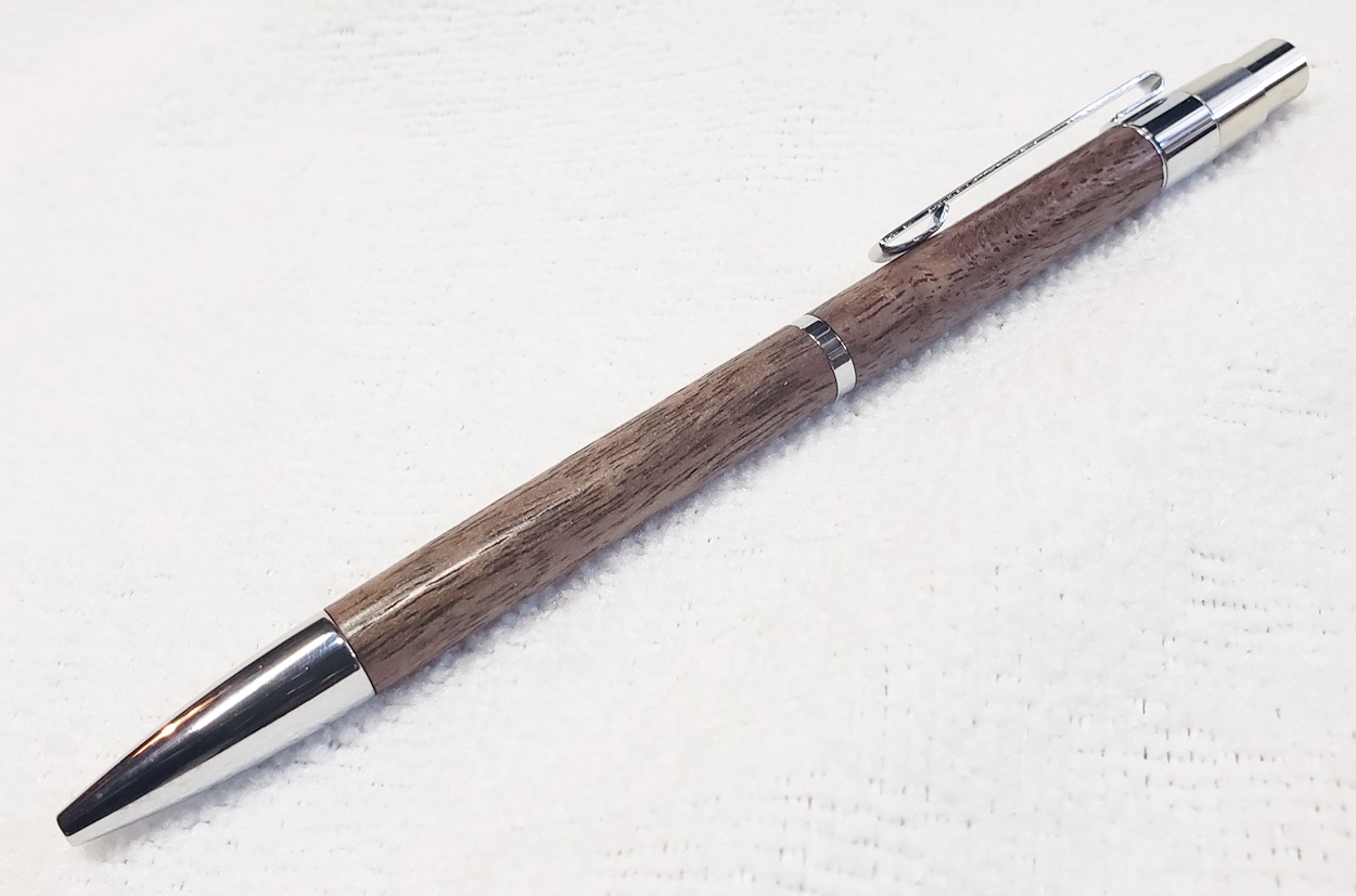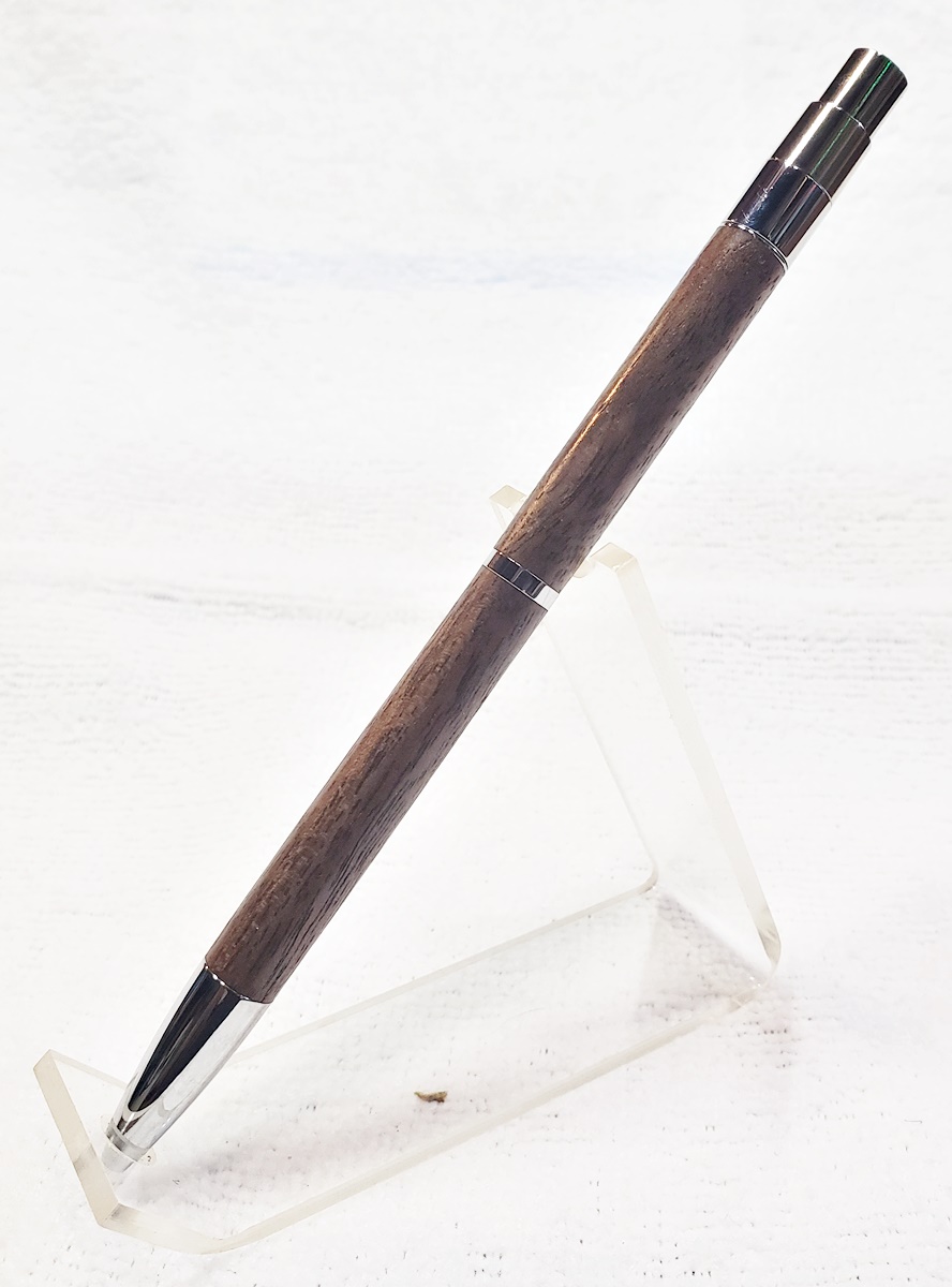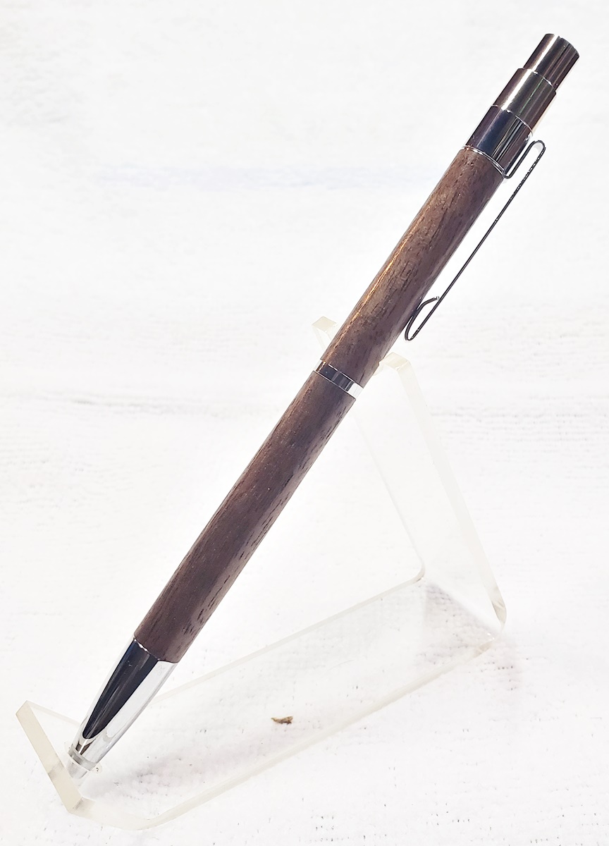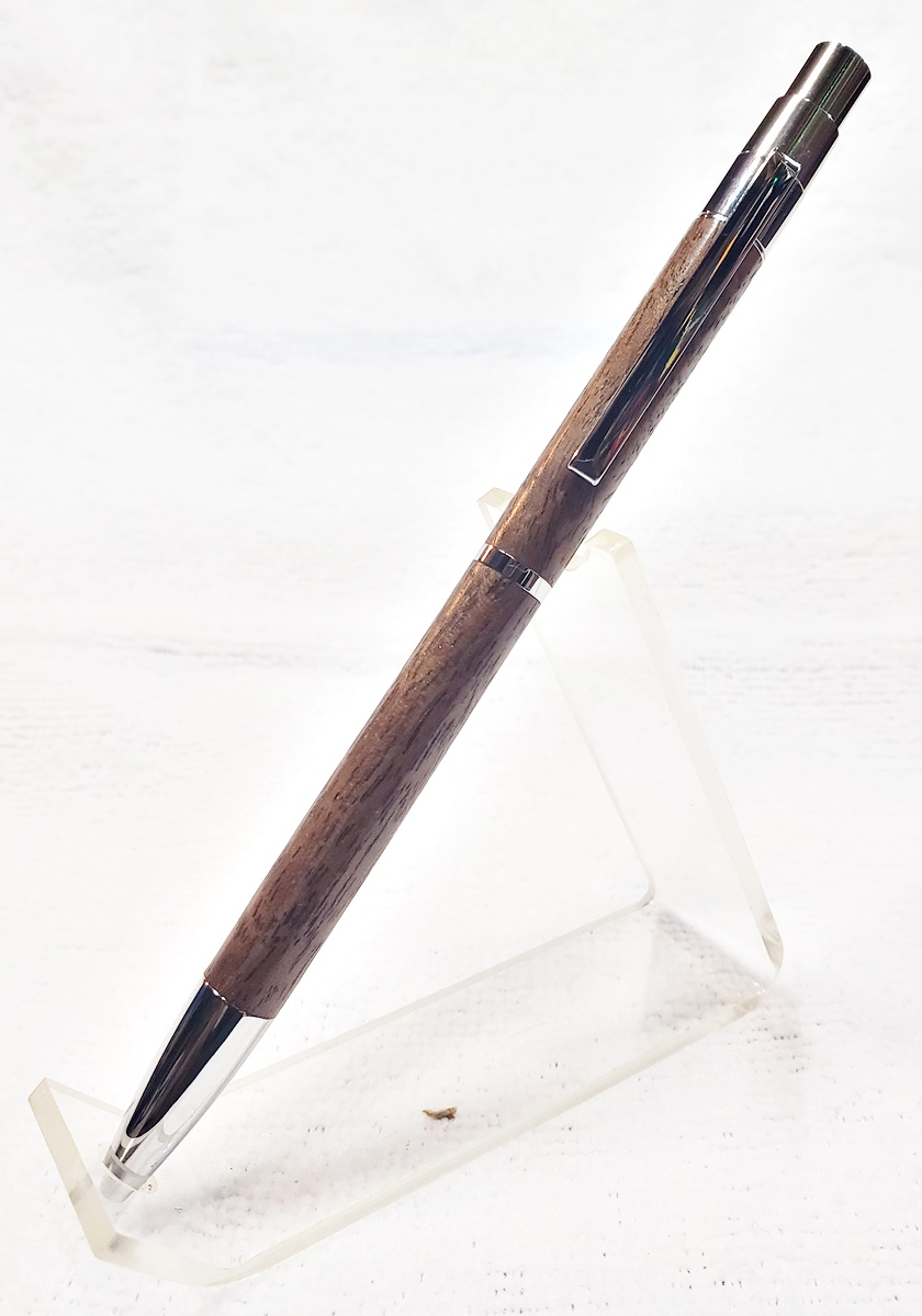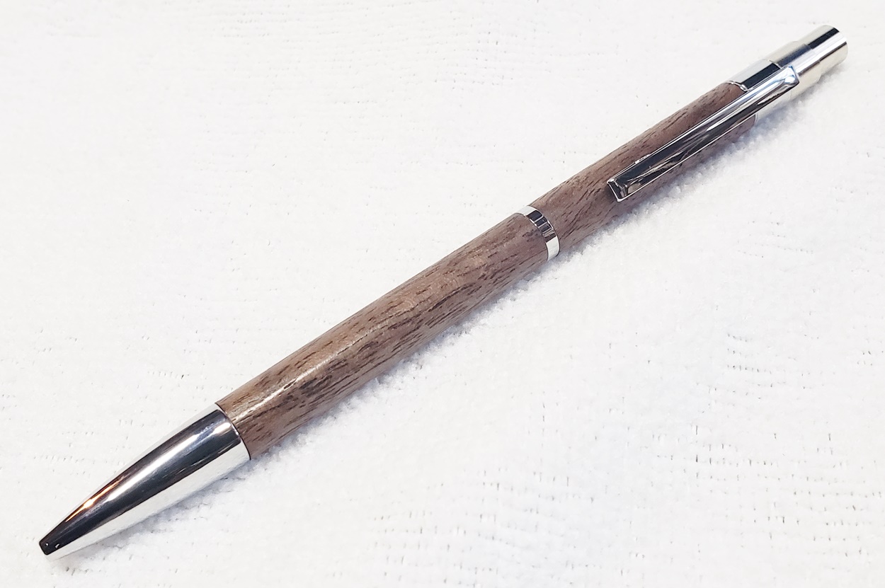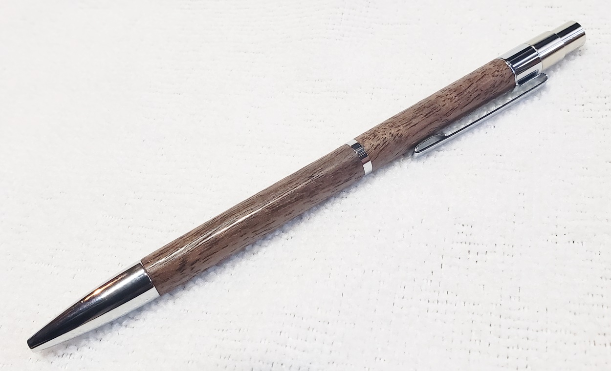 My second DuraClick Slim pen, also in chrome, from PSI. The wood is walnut. It's kind of unremarkable, except that it has meaning. My dad gave me this big chunk of walnut over 30 years ago. He bought it at a yard sale. He's been gone for over 15 years now, so it means a lot. I made it for my sister, she and my dad were very close when he was alive.