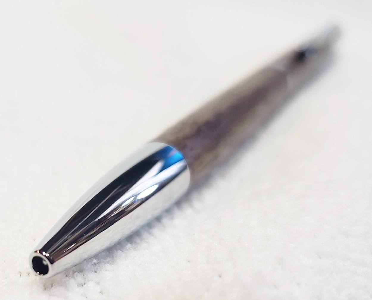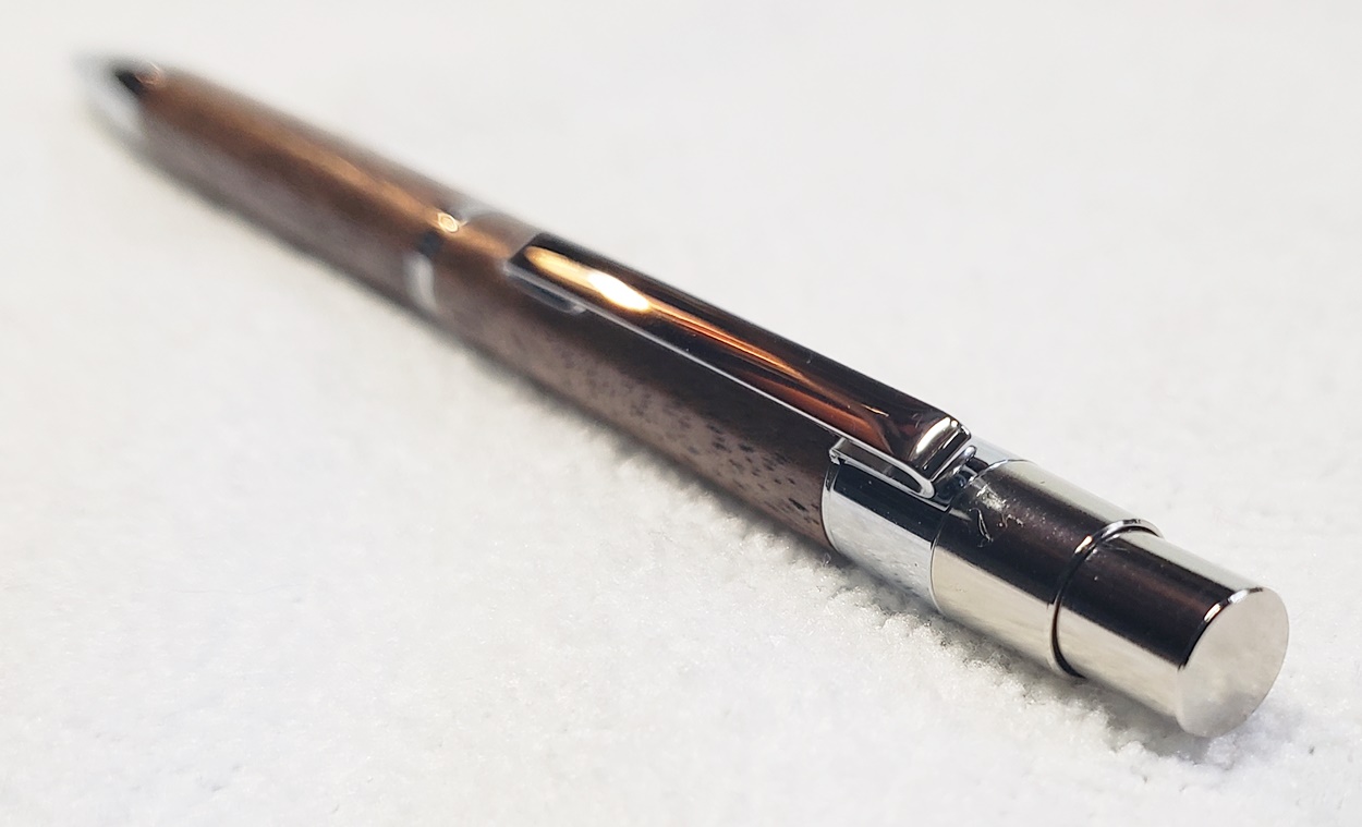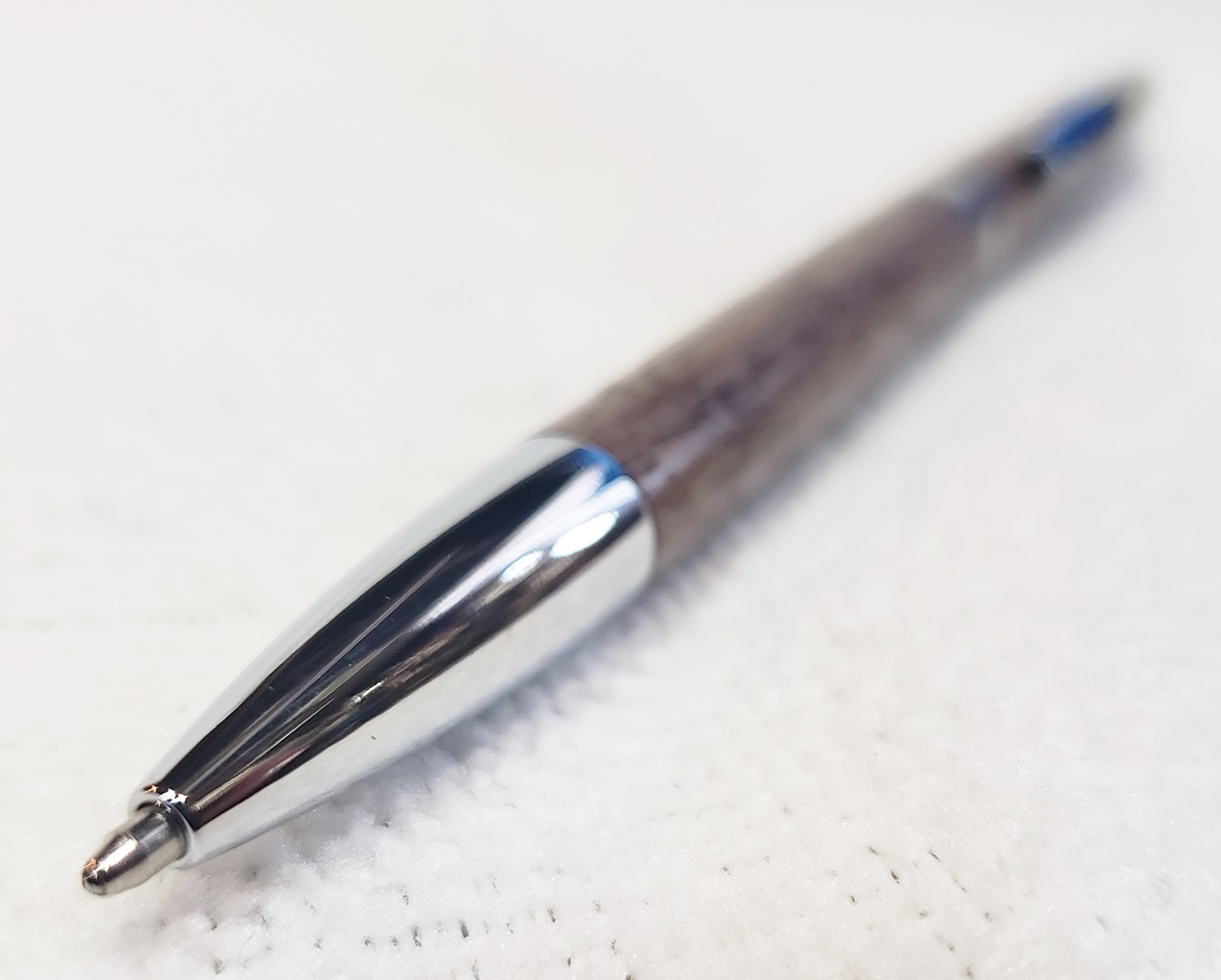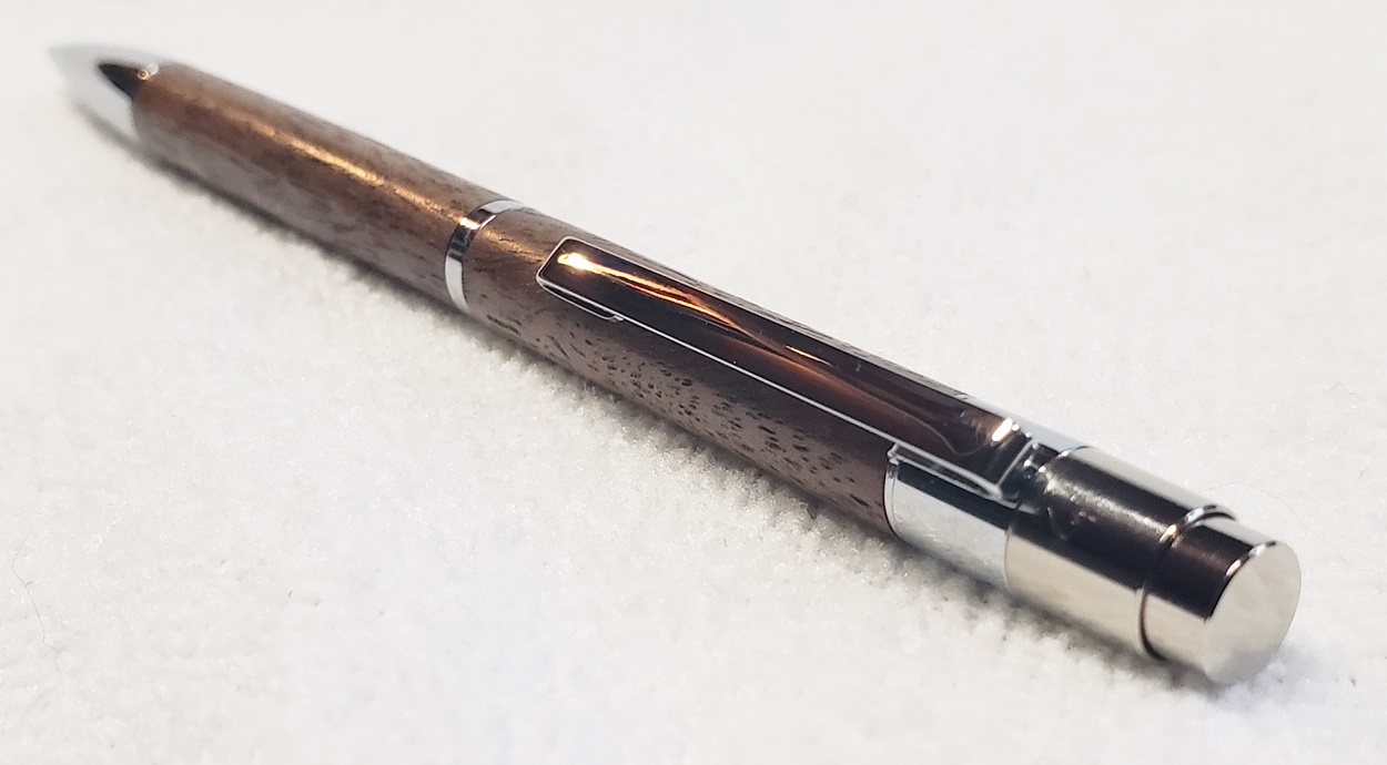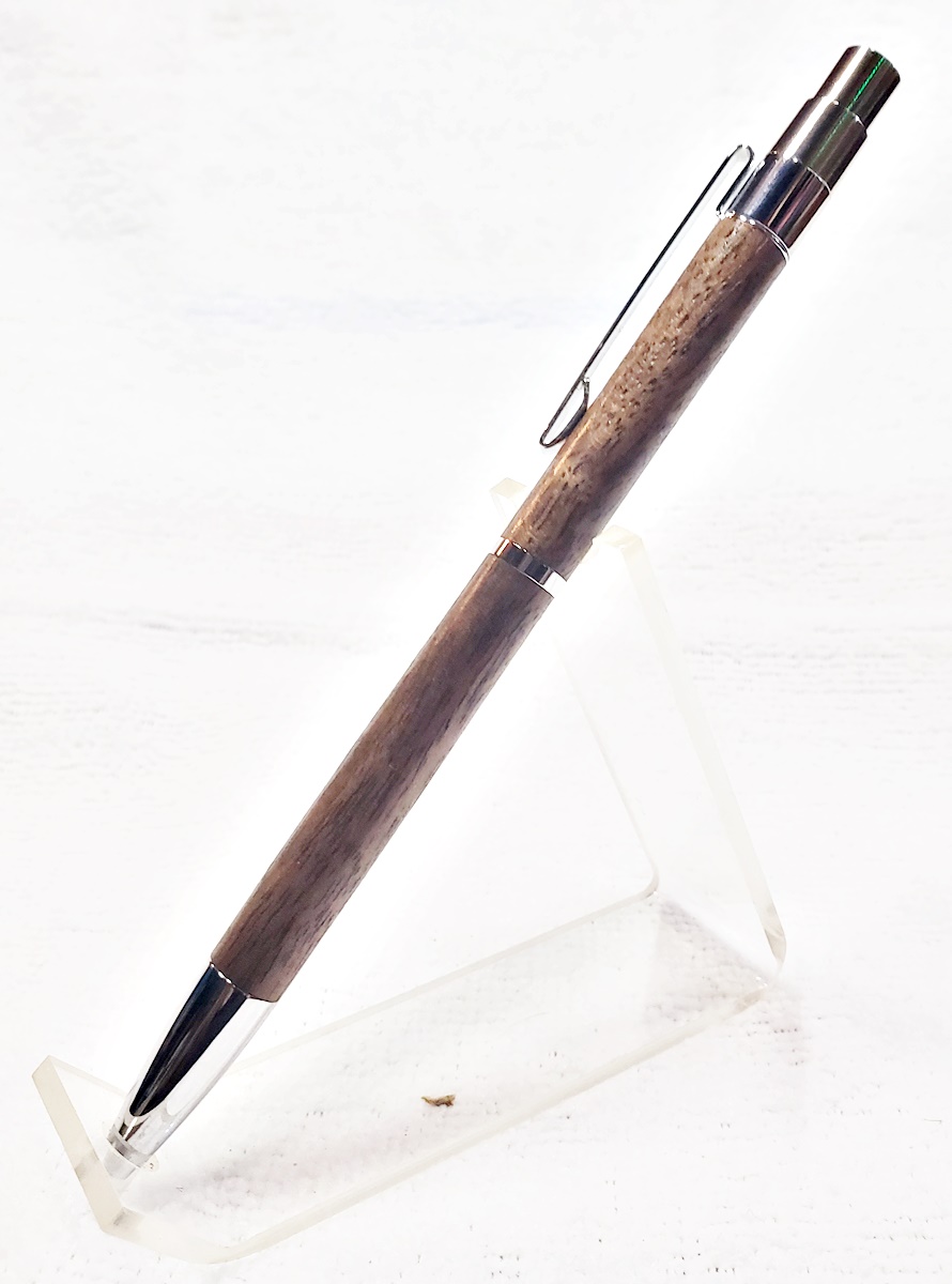 My second DuraClick Slim pen, also in chrome, from PSI. The wood is walnut. It's kind of unremarkable, except that it has meaning. My dad gave me this big chunk of walnut over 30 years ago. He bought it at a yard sale. He's been gone for over 15 years now, so it means a lot. I made it for my sister, she and my dad were very close when he was alive.