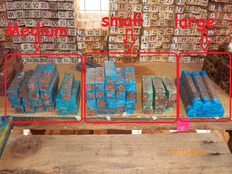 This is the reason why I made them in these 2 sizes, the pods that are a little longer than the 2"1/2 but well under the 5", lets say about 4" or less, were cut to 3"1/4 so, you have the option of buying a short and a medium to make a 2 barrel pen, even though the smaller blanks will do most barrels even on a double barrel pen but, the medium is there to utilise that little extra pod I had, and that can be of great use to you considering that the long blanks, would be the full 130mm length that I hope to have some pods of that size from this yield from the tree (I will be checking this small Banksia tree in a few days).