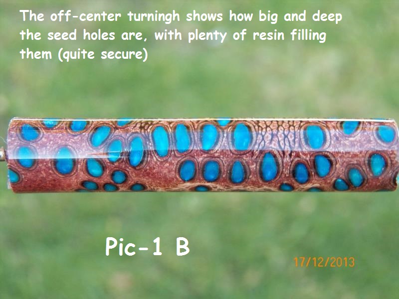 One thing that I need to say is that, these are not blanks that you want to put on slimlines or any of those skinny pens, the seeds pockets only go so far into the pod so, the resin that is filling it, will be all gone by the time you get it that thin so, not a good way to use these blanks, they need a wider diameter as possible in the pen/barrel, any kit that require a 10mm drill bit and above, are the kind of kits where these blanks will show its best, removing all the resin from these blanks, is spoiling the blank...!