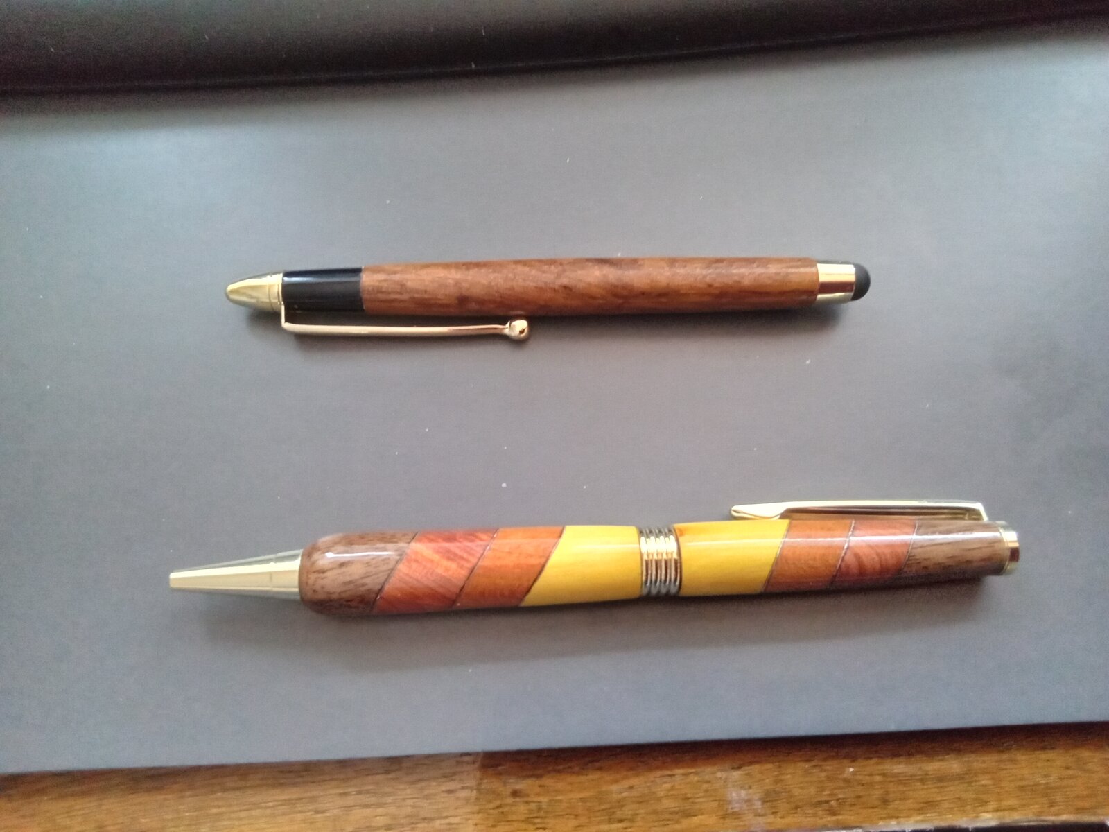 Long work day yesterday, but had a chance to pump out a couple last night. Stylus was made for a friend at work from cumaru from his new deck. The Trimline is made for my son-in-law who provided me with a lot of wood from his family's land (Osage orange in the middle, then red oak, cedar, and walnut).