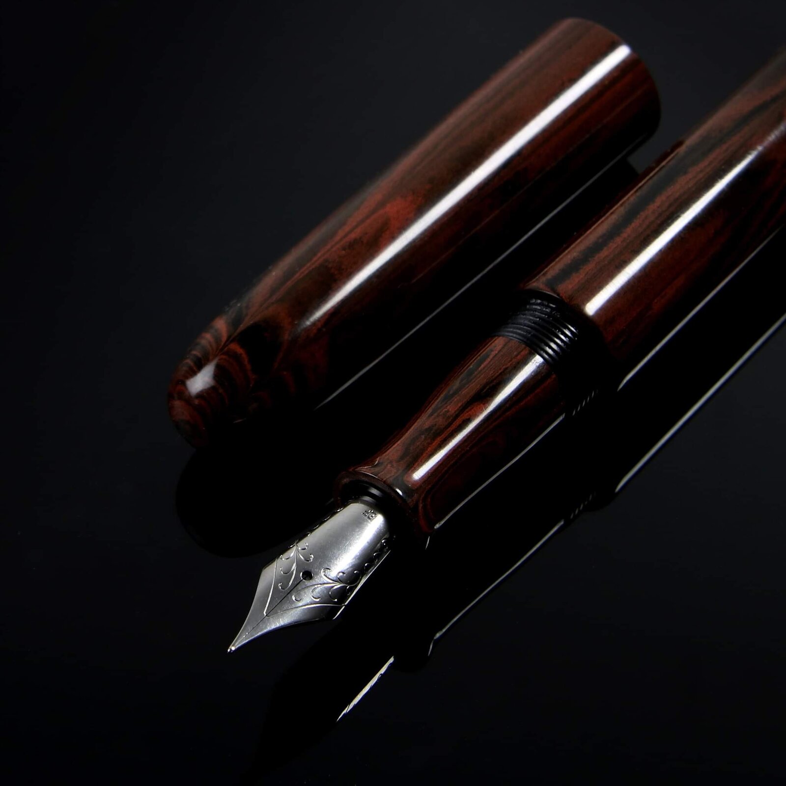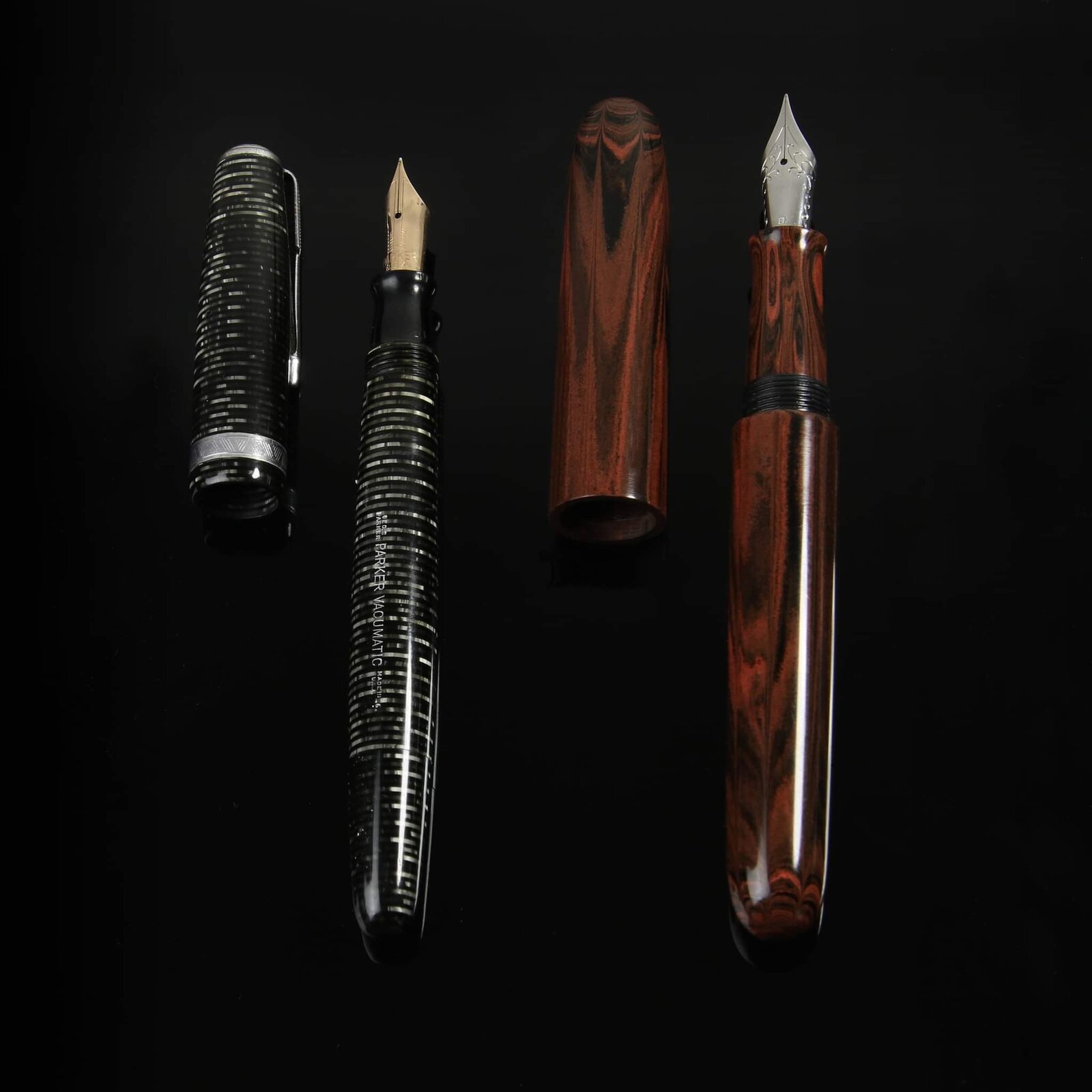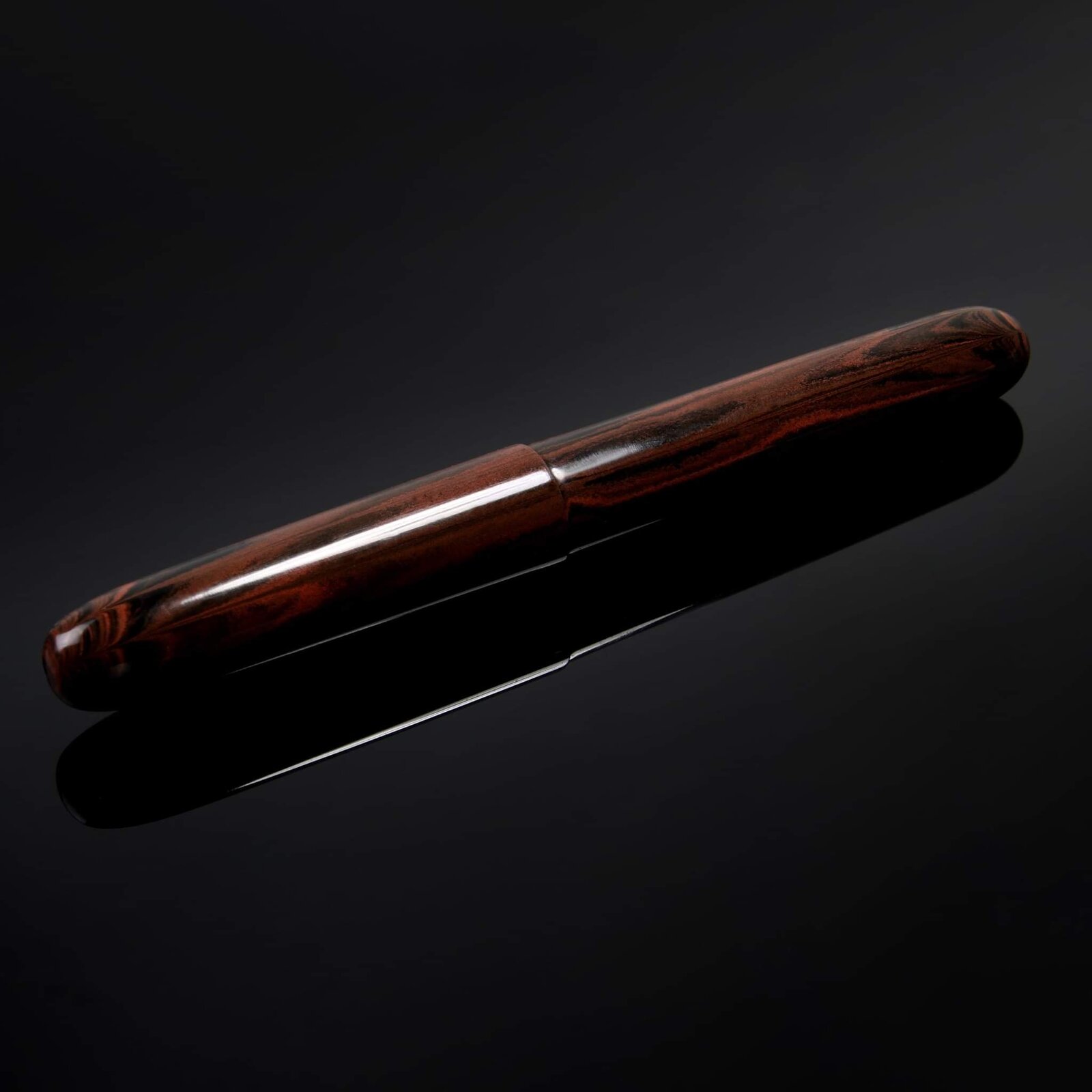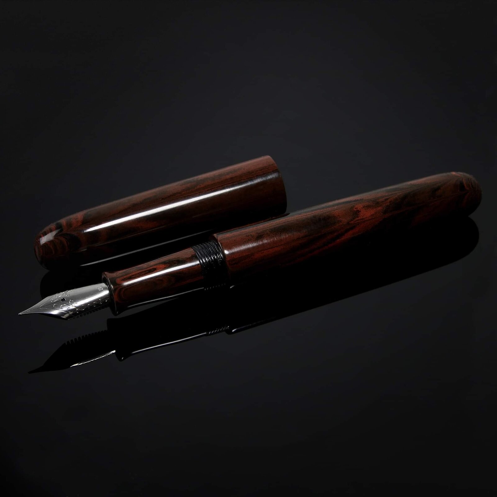 Another pen made entirely of ebonite. The pen has a corrected cup, section and barrel shape. Black thread, also made of ebonite.