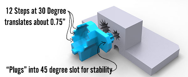 The jig helps a blank revolve over 12 steps (30 degree increments) while moving in and out to finish where it started.