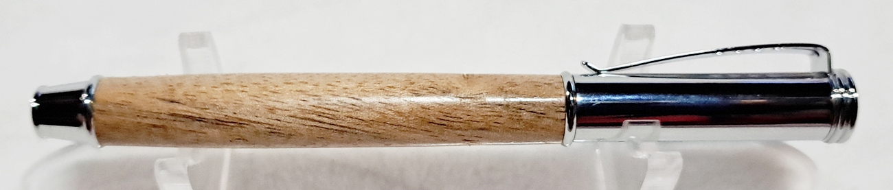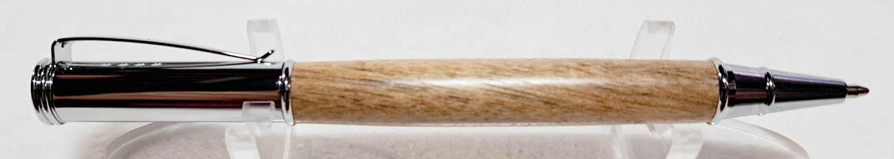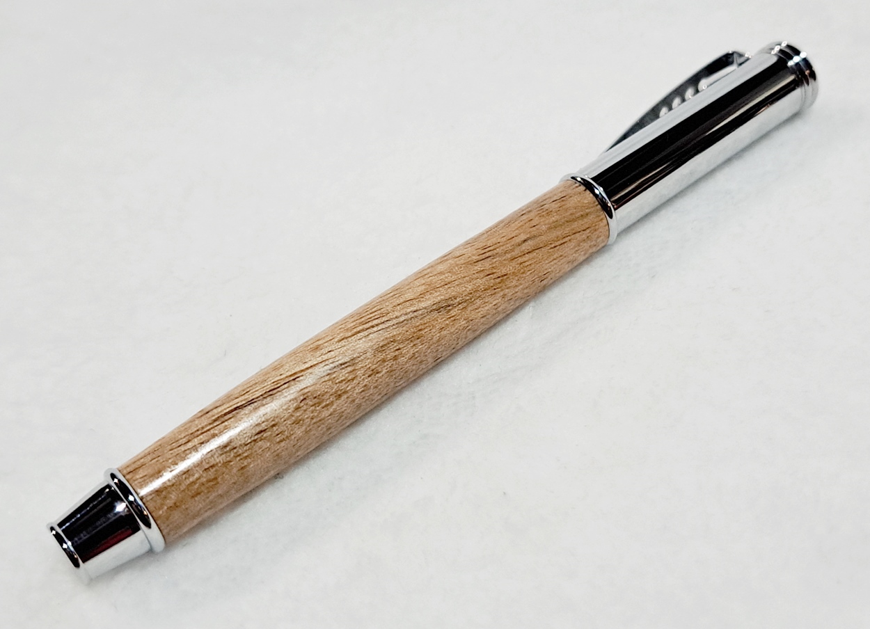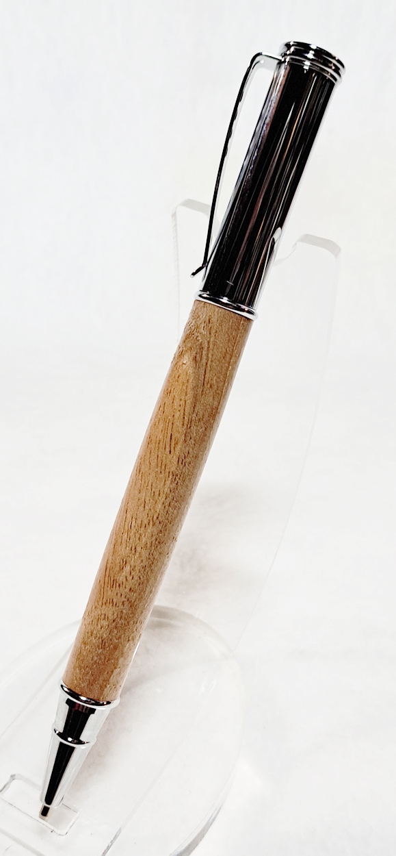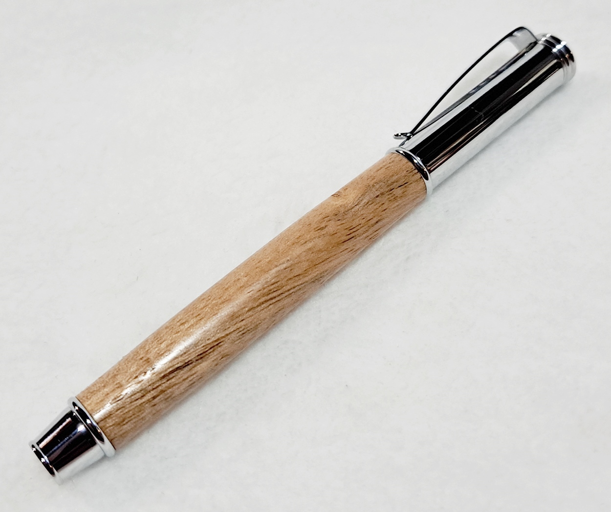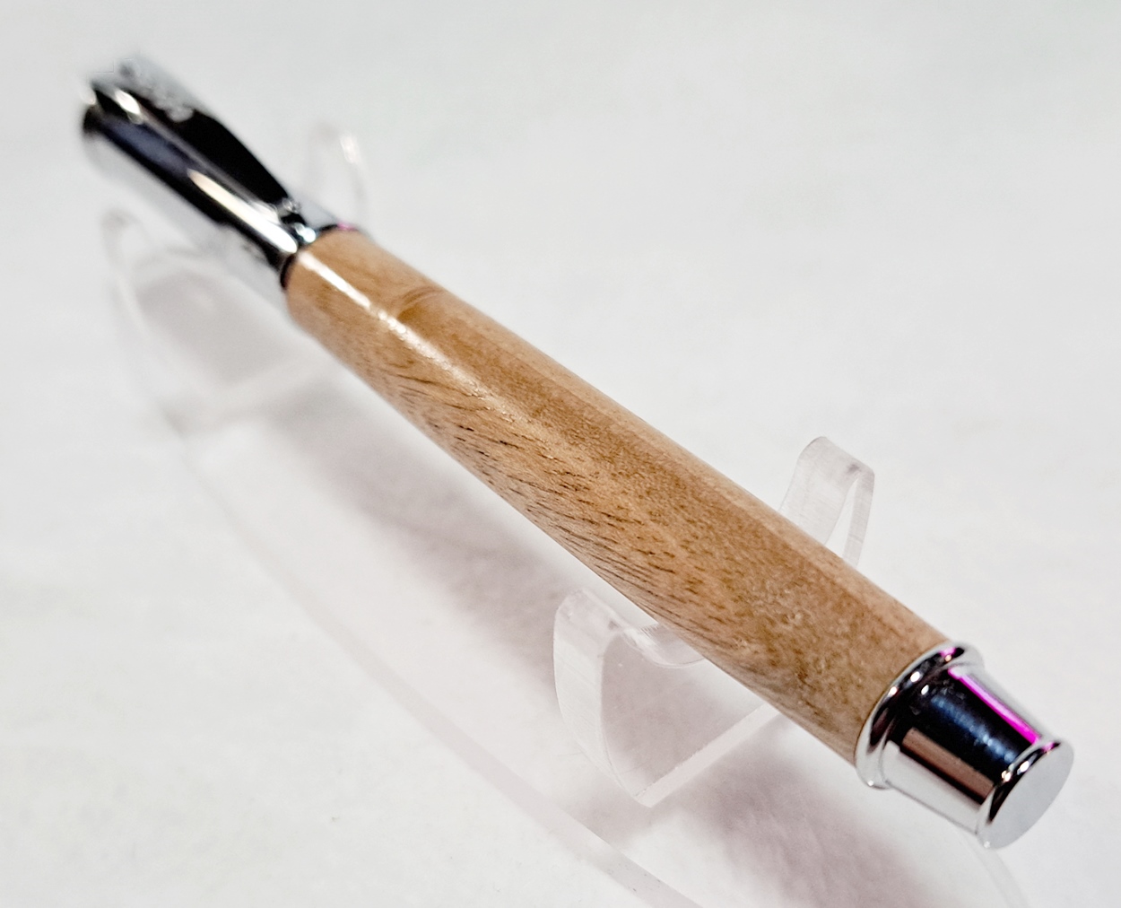 This is an Editor pen in chrome from Crooked Mill. The wood is black walnut. The finish is Mylands.