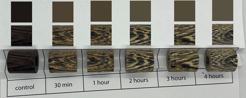 I placed wenge in bleach for different amounts of time to see how quickly it would lighten.