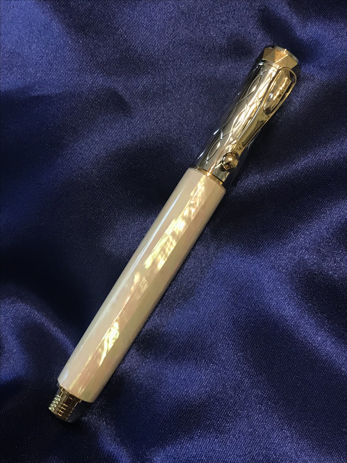 A friend of mine was doing some cleaning and gave me a few of these kits. It's a very nice kit. Although I'm not a fan of the clip being on the cap it screws on. My thought if the pen come loose all the work it gone and all that's left is the cap. The pictures don't do it justice. The blank is called Angel Wing which is a type of Pearl Shell and has lots of color. Questions and Comments Welcome. Thanks