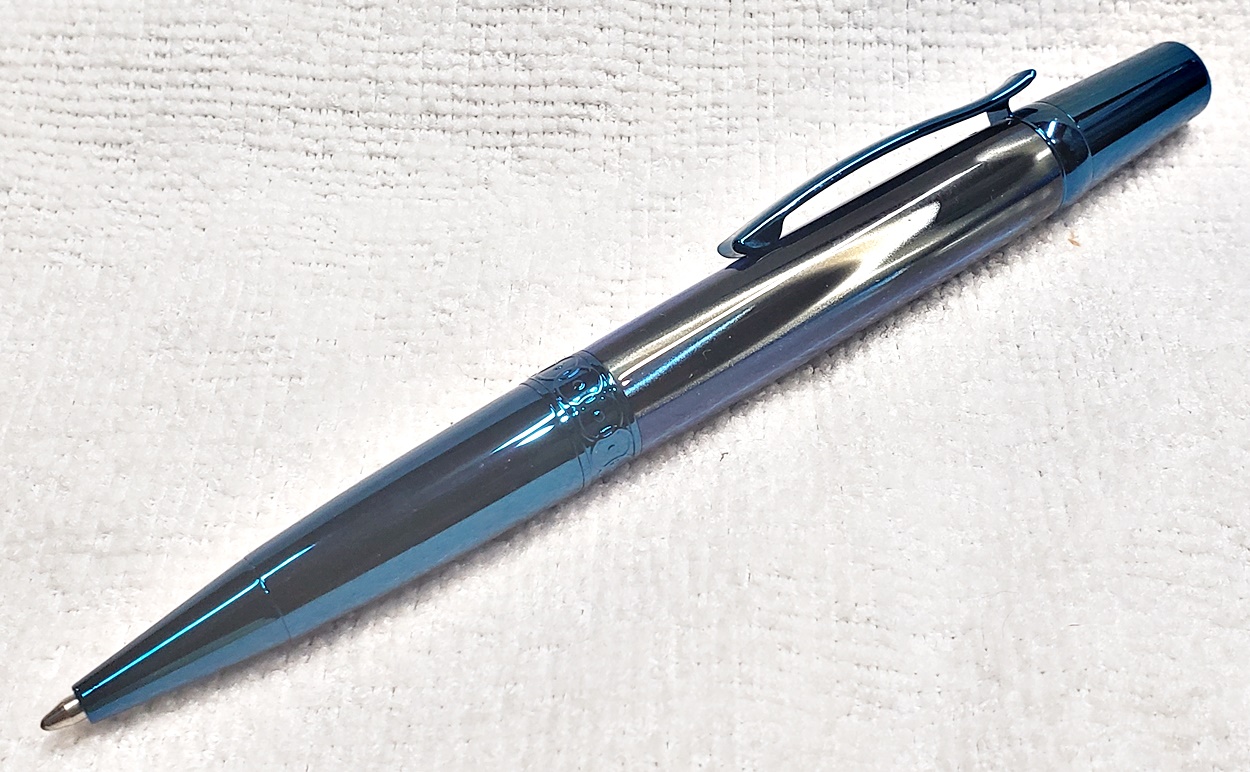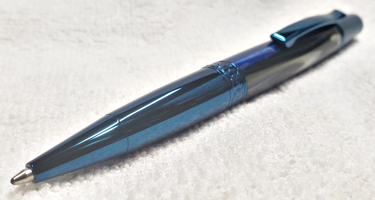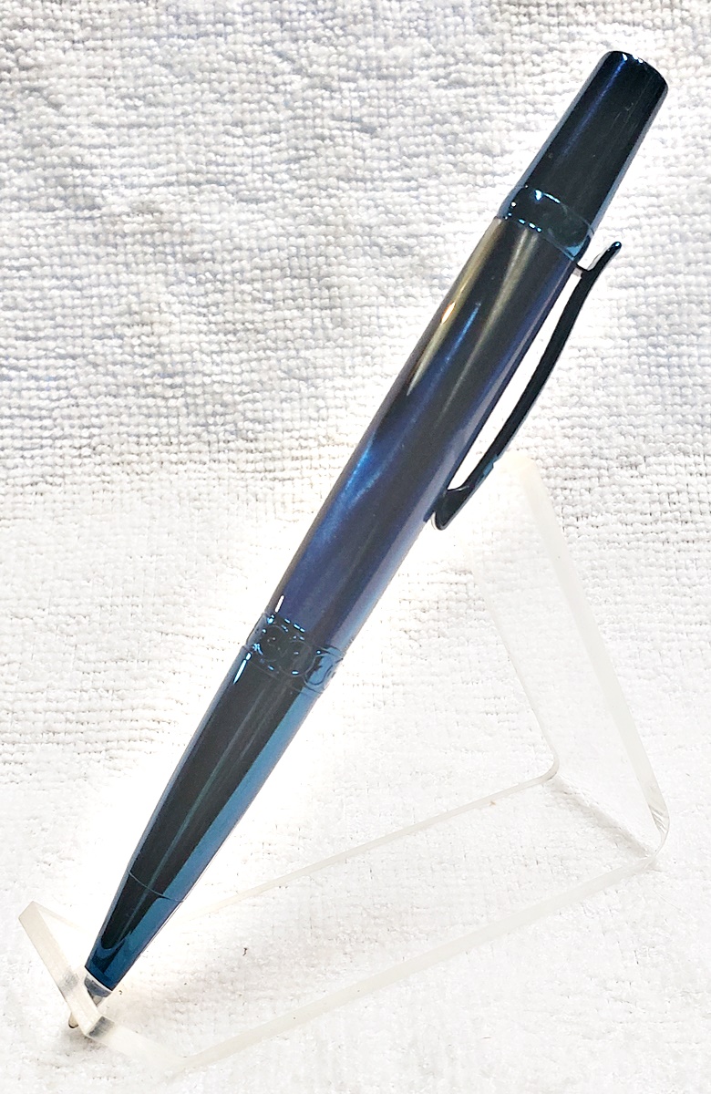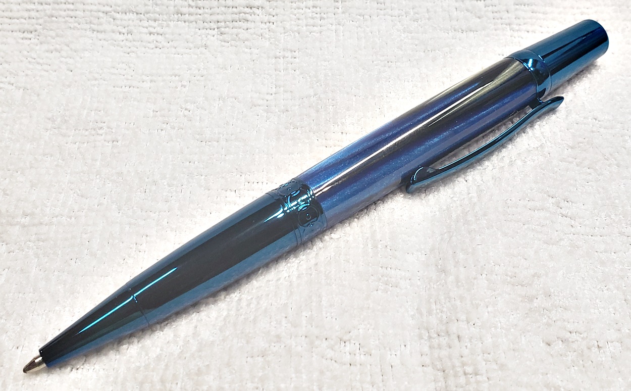 This is an Elegant Monarch in a new finish for me, called Blue Galaxy, from Turners Warehouse. I can't remember the name of the blank, Strata Gem, maybe? I'm pretty sure it was from Exotic Blanks. I really, really like the pen and the blank.