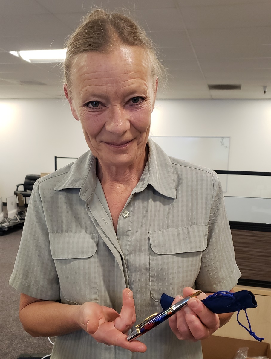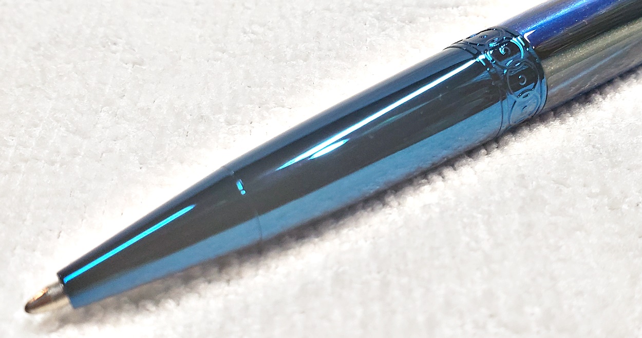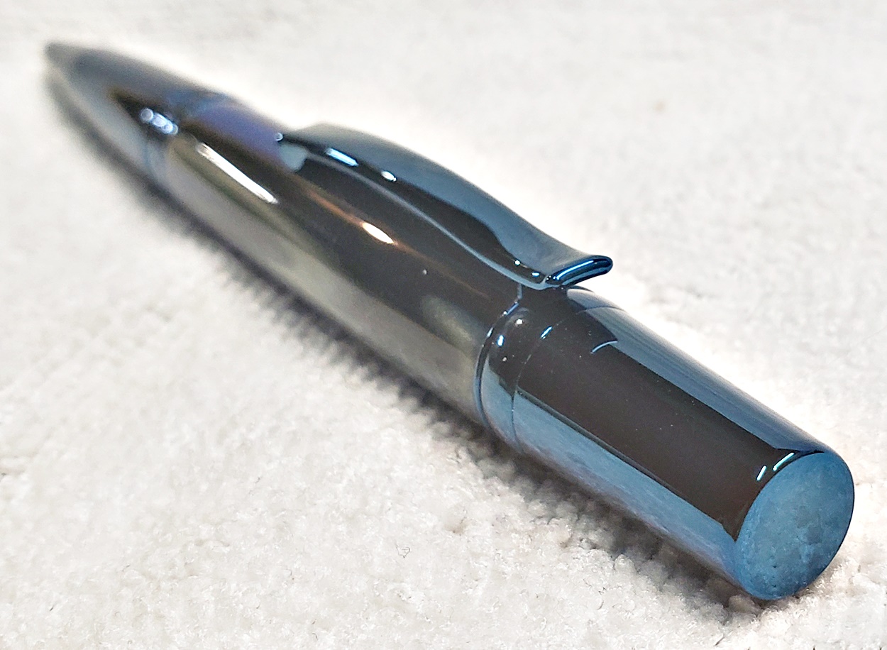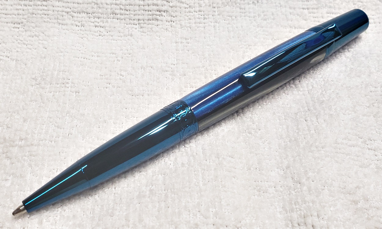 This is an Elegant Monarch in a new finish for me, called Blue Galaxy, from Turners Warehouse. I can't remember the name of the blank, Strata Gem, maybe? I'm pretty sure it was from Exotic Blanks. I really, really like the pen and the blank.