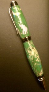 A lady I work with has been wanting a pen with an elephant for a while. So, I contacted none other than Jeff Powell who knocked it out of the park. I am glad I bought two blanks now I have a spare. This had thin CA, about 4 coats, mm, plastic polish and ren wax. This is the lady that likes the cigar thick, and that's why it isn't b2b. This is on black ti cigar. Let me know what you all think.