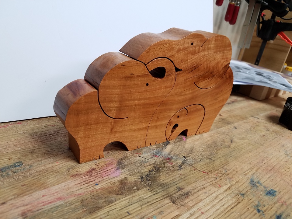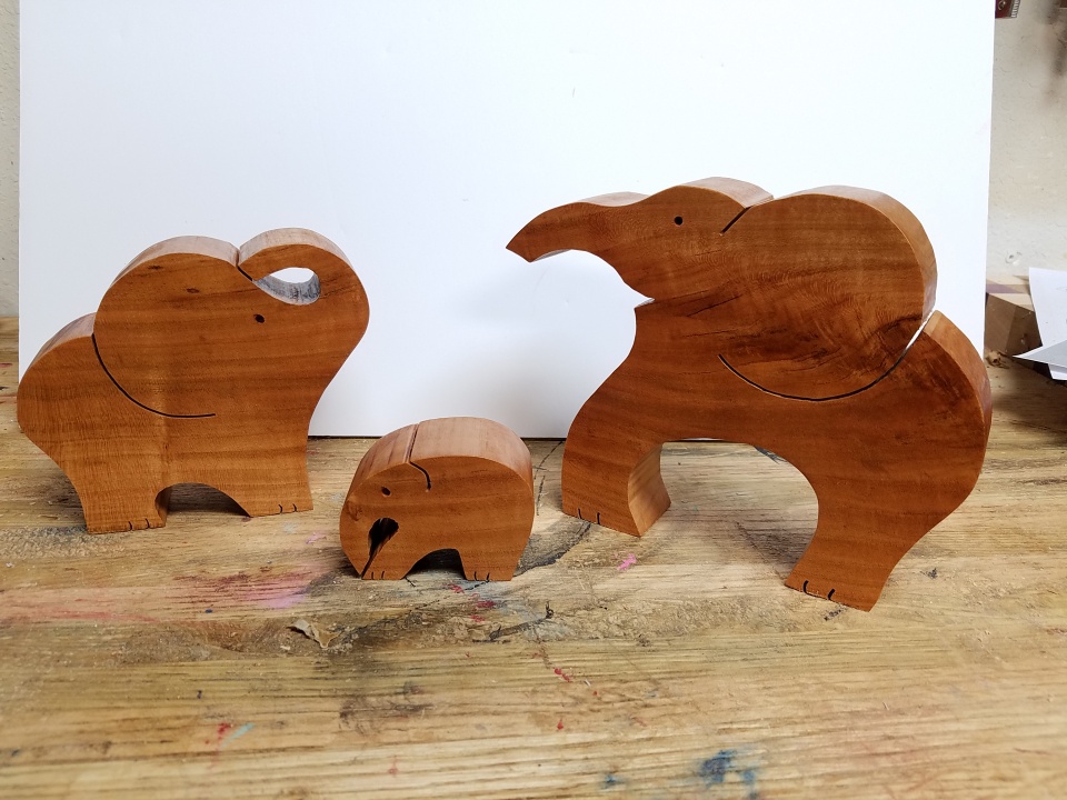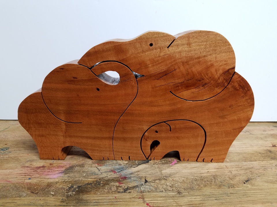 I made this Elephant family art piece on the scroll...err bandsaw. It started on the scroll saw but the cherry was too thick and it would have taken forever. I am pleased with how it turned out.