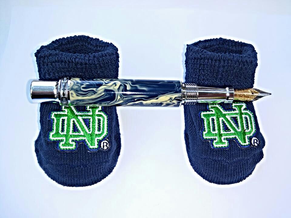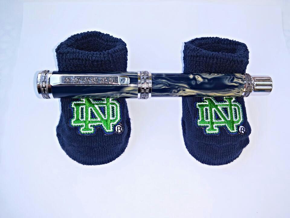 Here is a promotion/xmas gift for my son..He was just promoted to VP where he works and the Notre Dame booties are there because he's a huge Notre Dame fan and they just had there first son :)