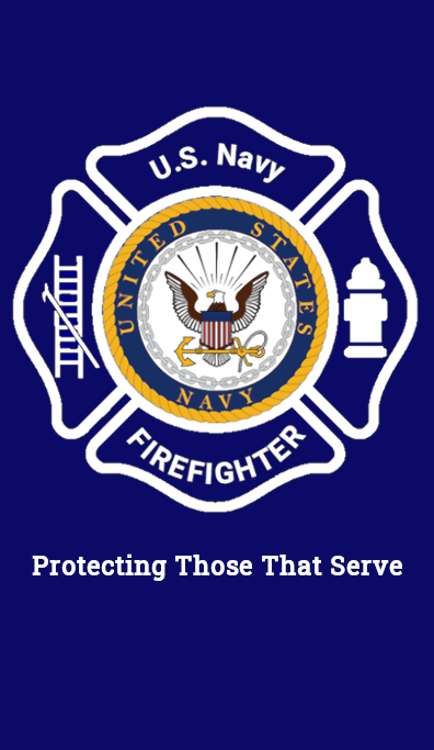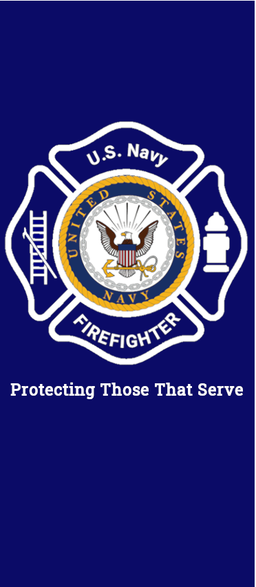It features a bold design with the Navy emblem and the Maltese Cross, a symbol of firefighters around the world.