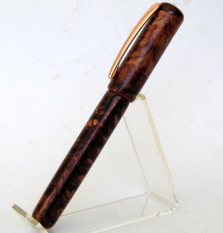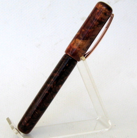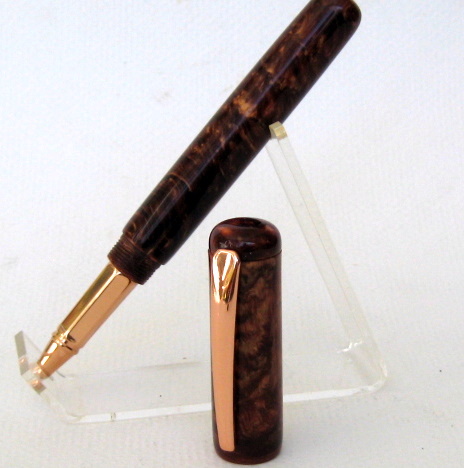 A friend sent these blanks to me. And, I thought it would look good with copper hardware. I don't know if it's legal to mention names here so, I won't. I can say that, the clip came from another friend and, the nib came from another friend. If you would like to know who they are, send a PM. I want to thank them all for their help.:wink: