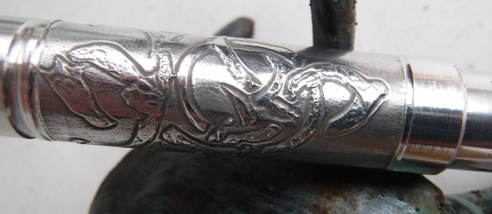 Bryguy Member Joined Jun 9, 2013 Messages 985 Location New Hampshire Apr 12, 2019 #1 I am off on a new tack. First try at etching. Celtic dragon on the cap and Celtic knot on the body. Attachments DSCF0268 (2).jpg 157.7 KB · Views: 473 DSCF0270 (2).jpg 124.4 KB · Views: 505