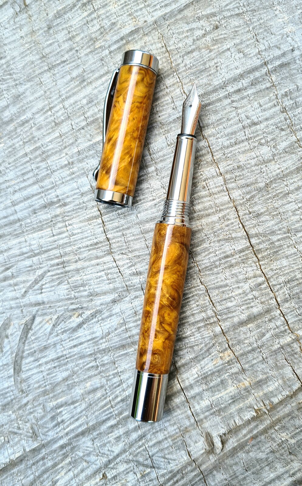 On a plain Atrax fountain pen, I love this kit for it's price and clean basic shape. It allows the blank to take centre stage.