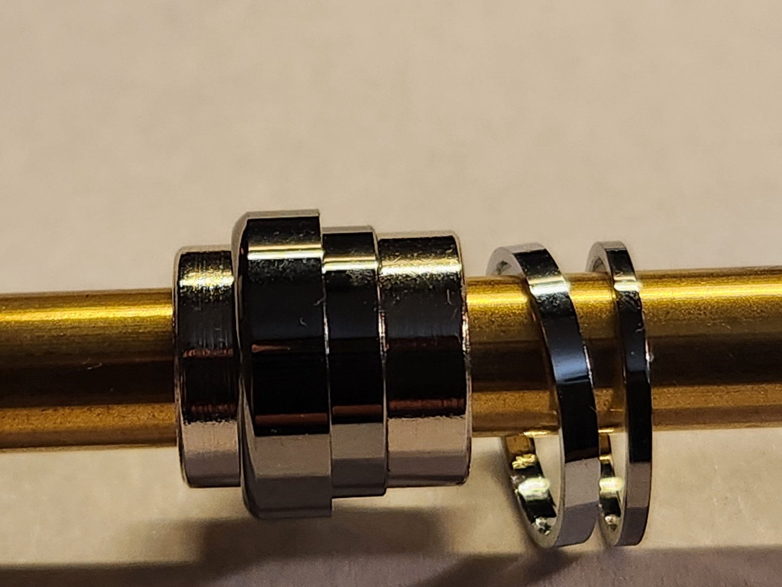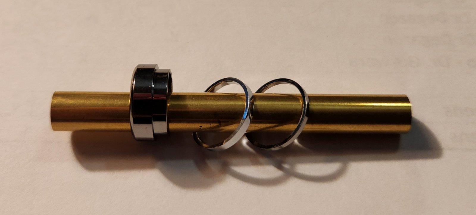 - Image 1: Full mandrel with loose rings between the center band and cap