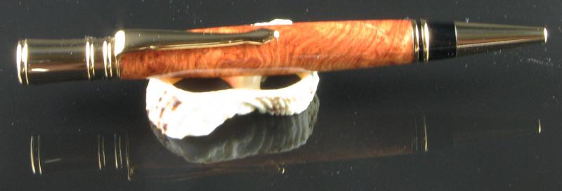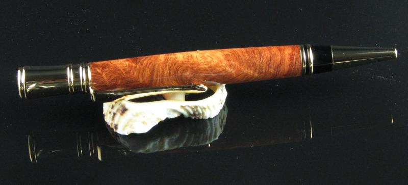 This is Australian Lace Sheoak wood that I turned the mounted it on a Executive kit from PSI. The wood was sanded form 150 grit through 600 grit then micro meshed to 12,000. I added seven coats of CA and seven coats of accelerator on it. Then sanded from 400 grit to 600 grit and then micro meshed all the way to 12,000. To bring out the grain and adding that luster finish was done with three coats of Meguiars Gold Class Carnauba Plus paste wax. (Yes, it's car wax). It resists oils from your skin and also any skin acids. It also does not smear or show finger prints as some wax's do. Hope you like it, and all comments are welcomed, good or bad.