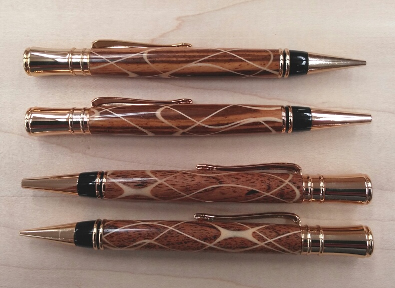 Nice pens. The Executive is one of my favorite pens - not necessarily for how it looks, but I like the size and feel when writing. It is handy to carry in a pocket. As you know, there is very little of the wood left once the blank is turned down to size on this pen. Which tells me that your segmented glue jobs are done pretty well. At least in my experience, the thinner I get with a segmented blank, the greater the chance of a poorly glued segment letting go.