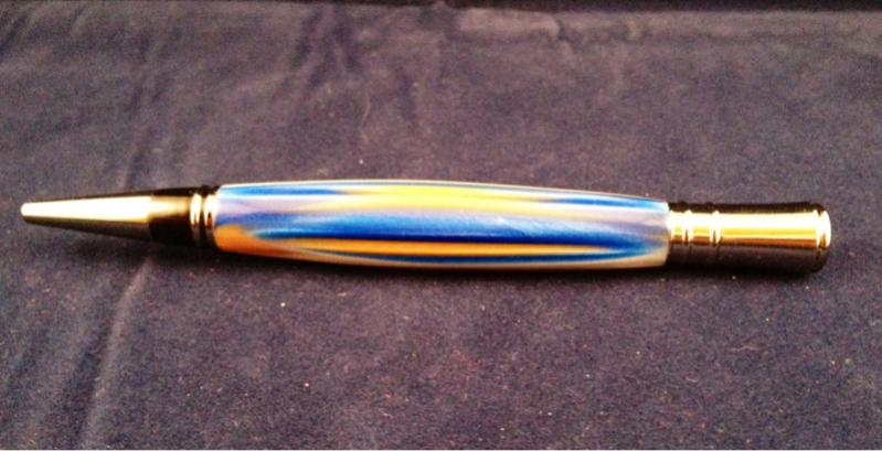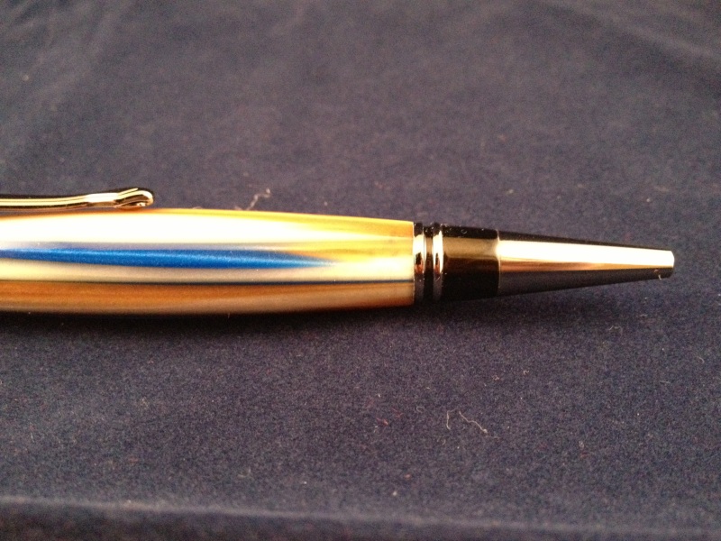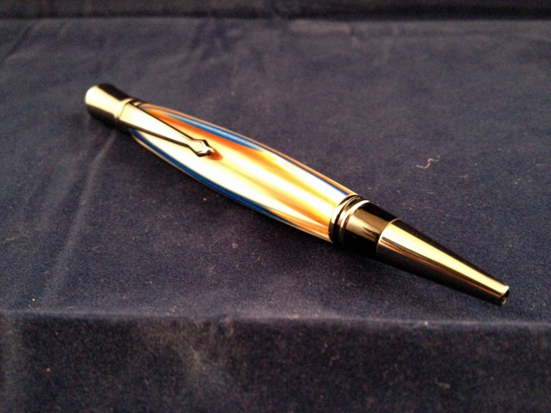 Finished up a pen tonight that is the first pen I have made that I think is ready for peer review. It's an executive rollerball in gun metal with a Dirty Denim blank. It's the first time I have made an executive, and I think it turned out ok. C&C welcome.