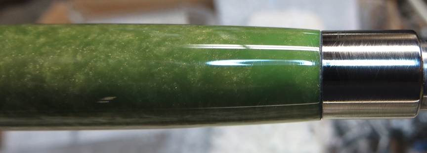 I reverse painted the blank, the the green paint I used was too bright. You can see it a little bit on the ends. But it's not too bad.
