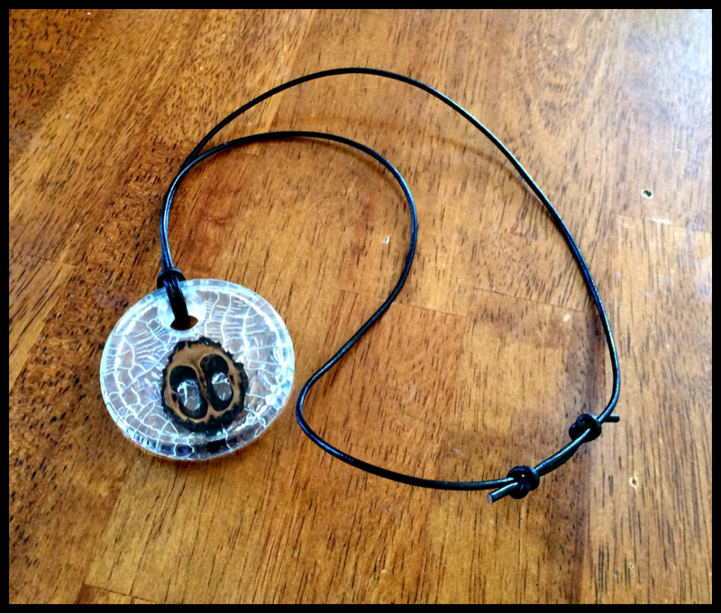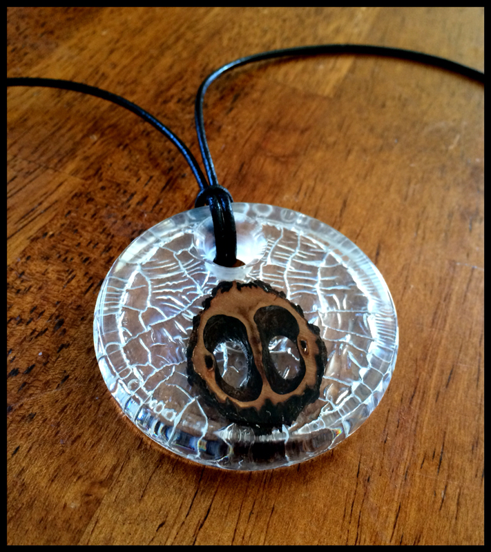 In the pics, it looks almost like the walnut is sitting on top of the pendant.