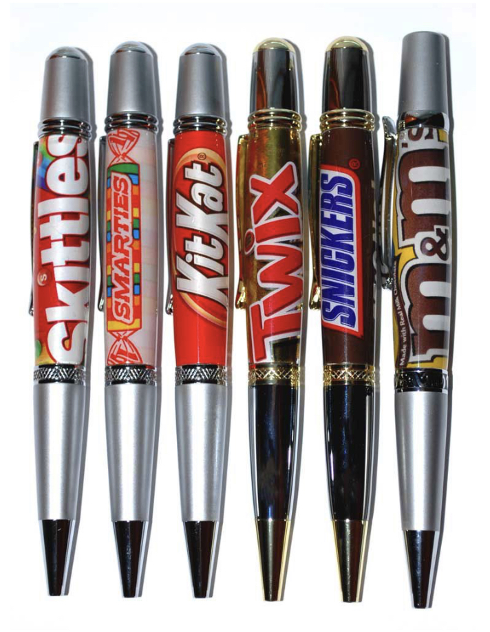 New Candy Wrapper Pen blanks from John U! These cool new pen blanks are made with real candy wrappers and will look awesome on any Sierra twist style pen kit. A fun gift for anyone with a sweet tooth, and sure to bring a smile! Collect the whole series!www.exoticblanks.com
