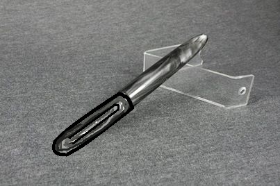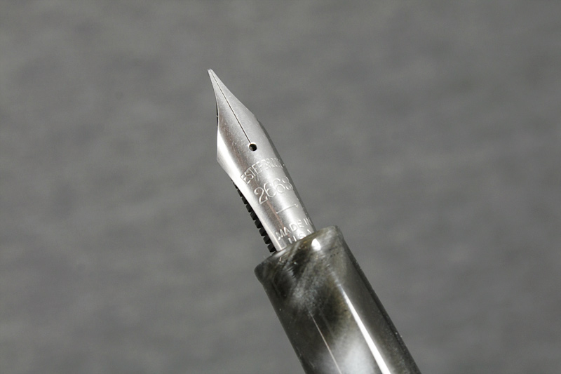 Anyway, this is London Fog acrylic with an Esterbrook 2668 nib. Because the nib doesn't have a nipple for a cartridge or converter, I'm going with a simple eye dropper filler. The material is clear enough that just a little light behind it lets you see right through to check ink levels.