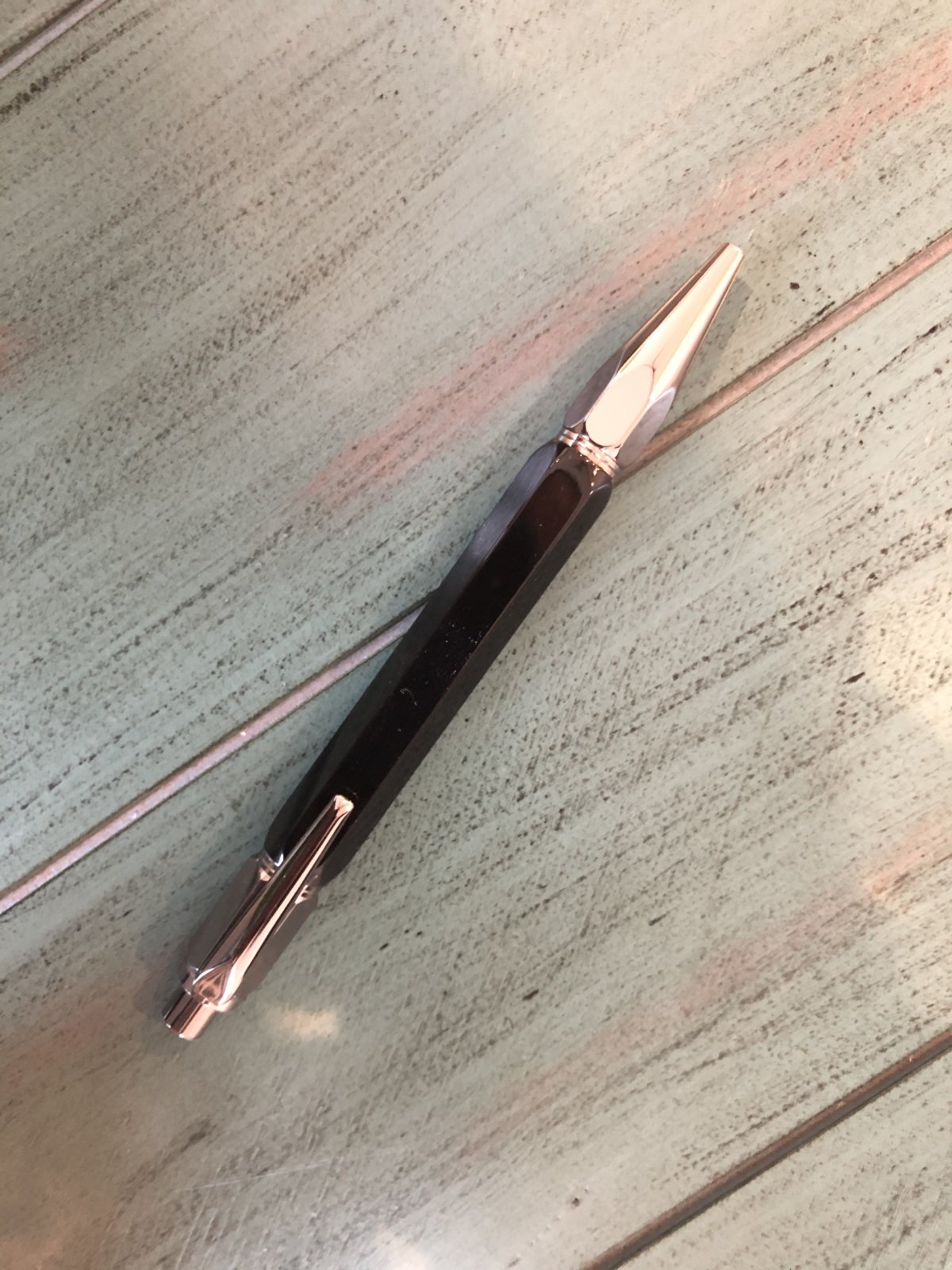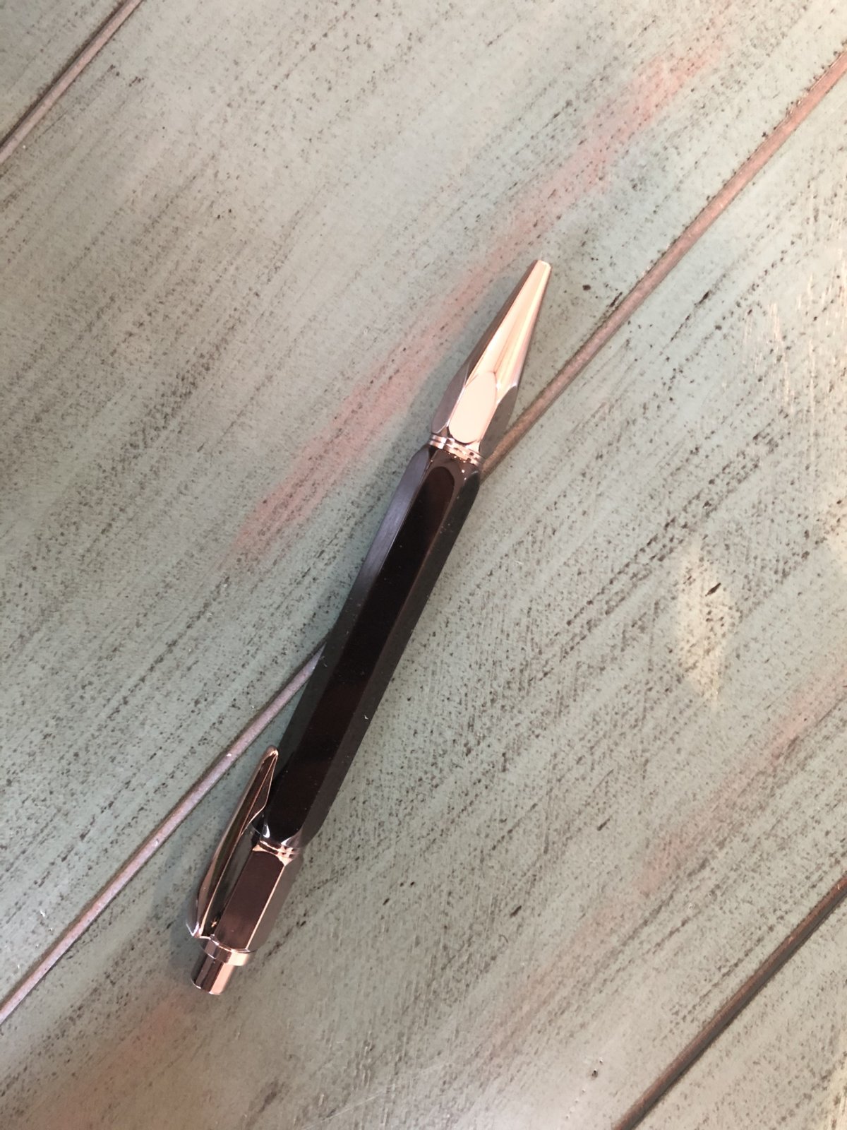 Turn the pen down to 0.60". Once you have done that. It takes about an hour, to facet (you only want to take a little off at a time, for each side, I normally go around all 6 sides about 4-5 times), then turn the ends on the lathe to match the bushings, sand 320, 400, 600, 1000, on a flat surface then polish on the buffing wheel rouge and white.