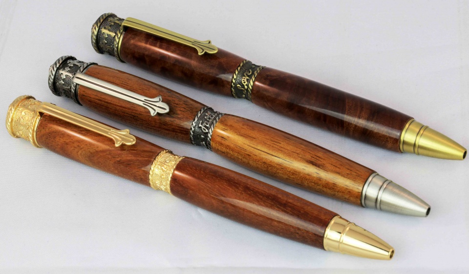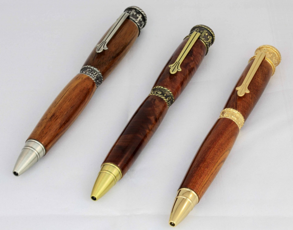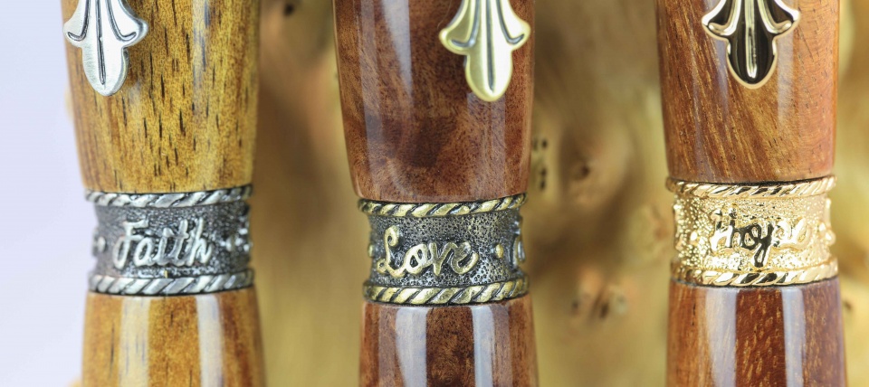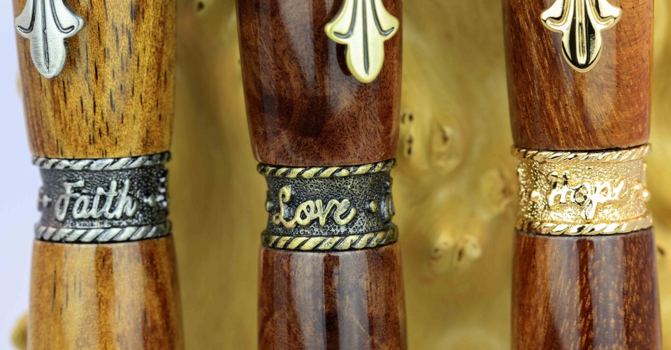 I wanted to have some special pens for Christmas, so I thought I would try the faith, hope and love series. I really like them. The materials are a burl, (not sure what burl though, found it in a pile of burls), Tasmanian black wood and myrtle. Let me know what you think? Thanks for looking.