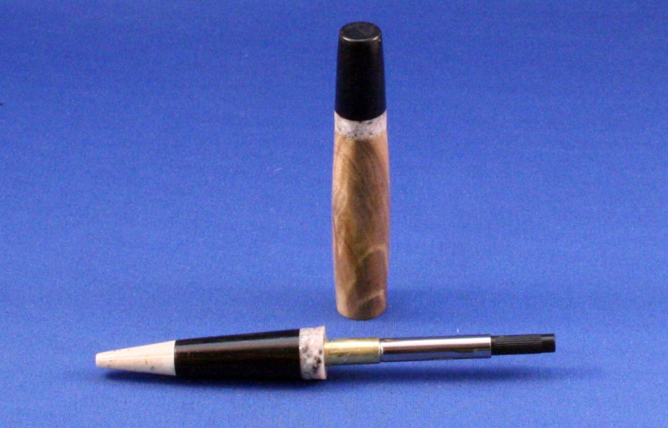 This was my entry in the Slimline Contest. I wanted to see if I could make a slimline that looked like a Sierra style. I tried to make it look as much like a LeRoi Elegant pen as possible.