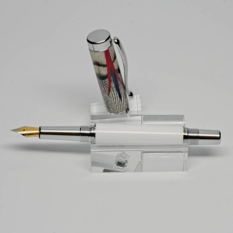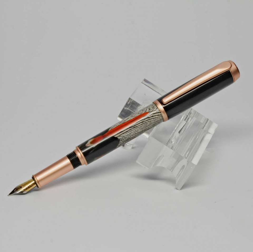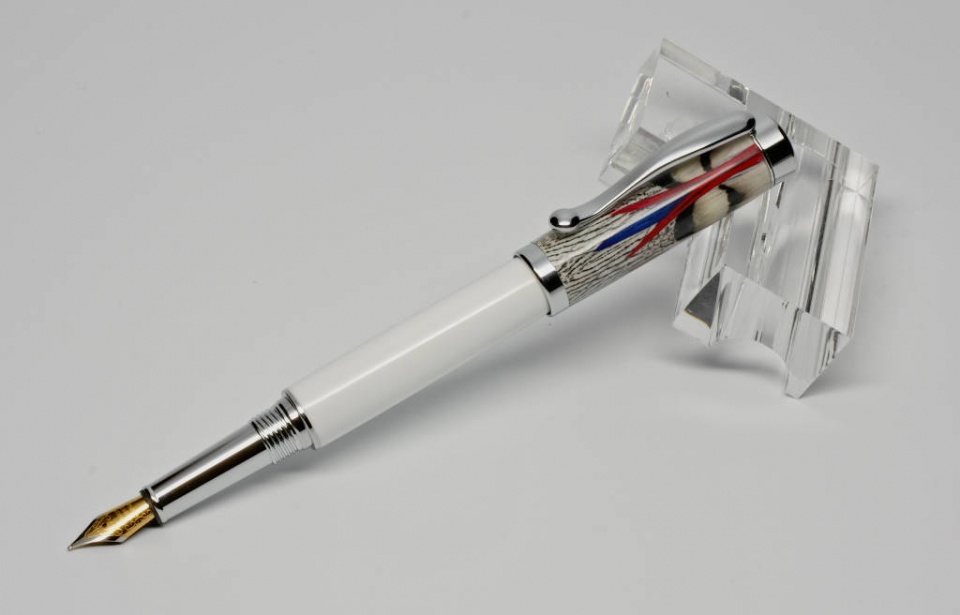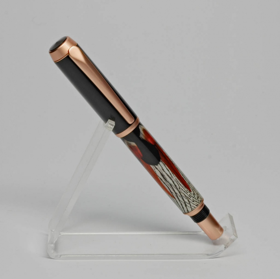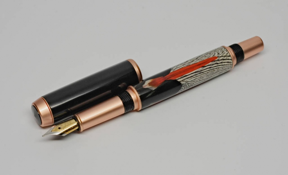 I think that since you were already working with predominantly black and then white in the feather blanks, the "save" to go with replacement barrels using the solid black, then solid white was not only the appropriate choice, but also a choice that works well from a design standpoint. Both of the "saved" pens look as though that were the plan all along. I am glad for you, and you have two very nicely finished pens as a result.